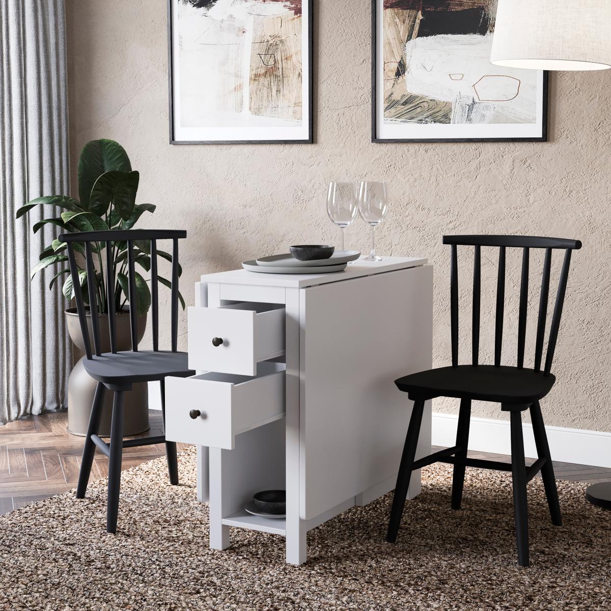 I love this extending dining table for its sleek, versatile design and practicality. Its modern white finish works well in contemporary and Scandinavian interiors, adding a fresh, clean look to the space. The dropleaf feature makes it ideal for smaller kitchens or dining rooms, offering extra surface area when needed without taking up permanent space. Styling tips include pairing it with black or wooden chairs for contrast, or keeping it minimalist with neutral tones and simple accessories. To make the most of its extendable function, opt for a sleek, understated centrepiece-such as vases or candles-that can be easily moved when the leaves are opened. It's a smart choice for those who value flexibility and clean aesthetics.