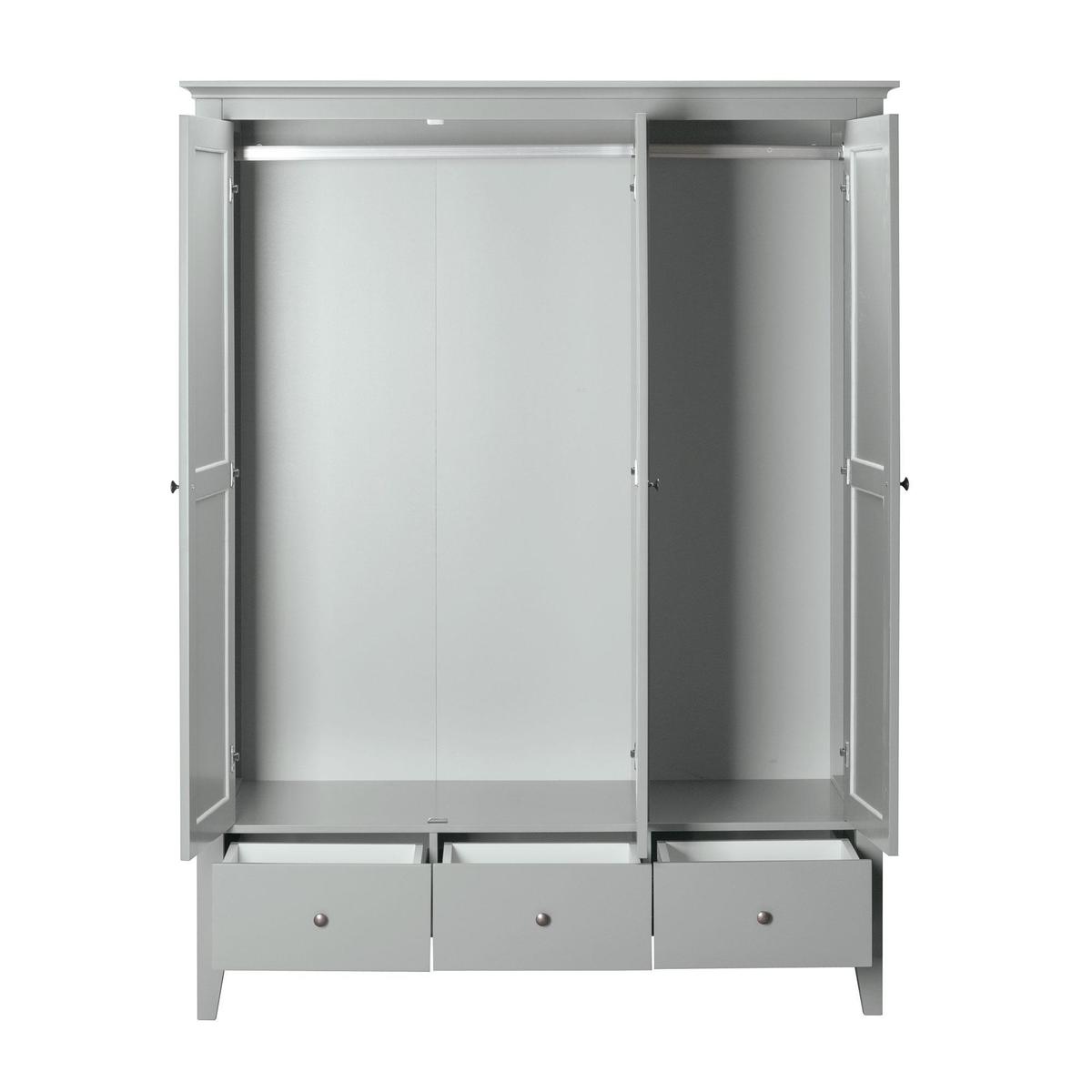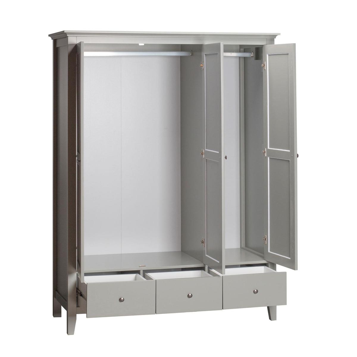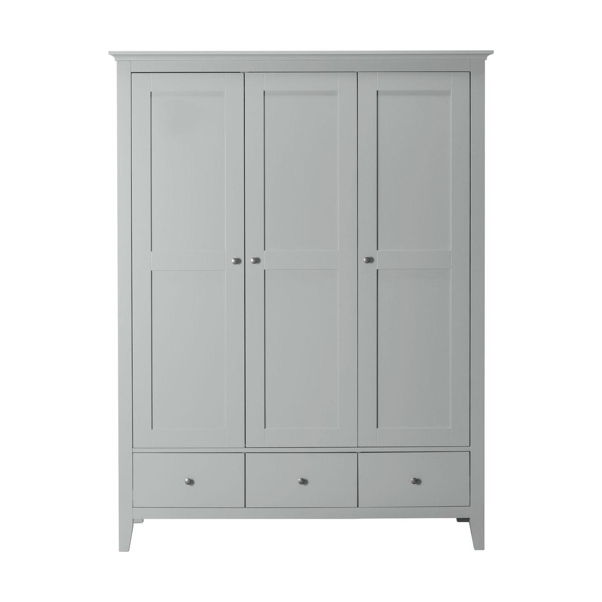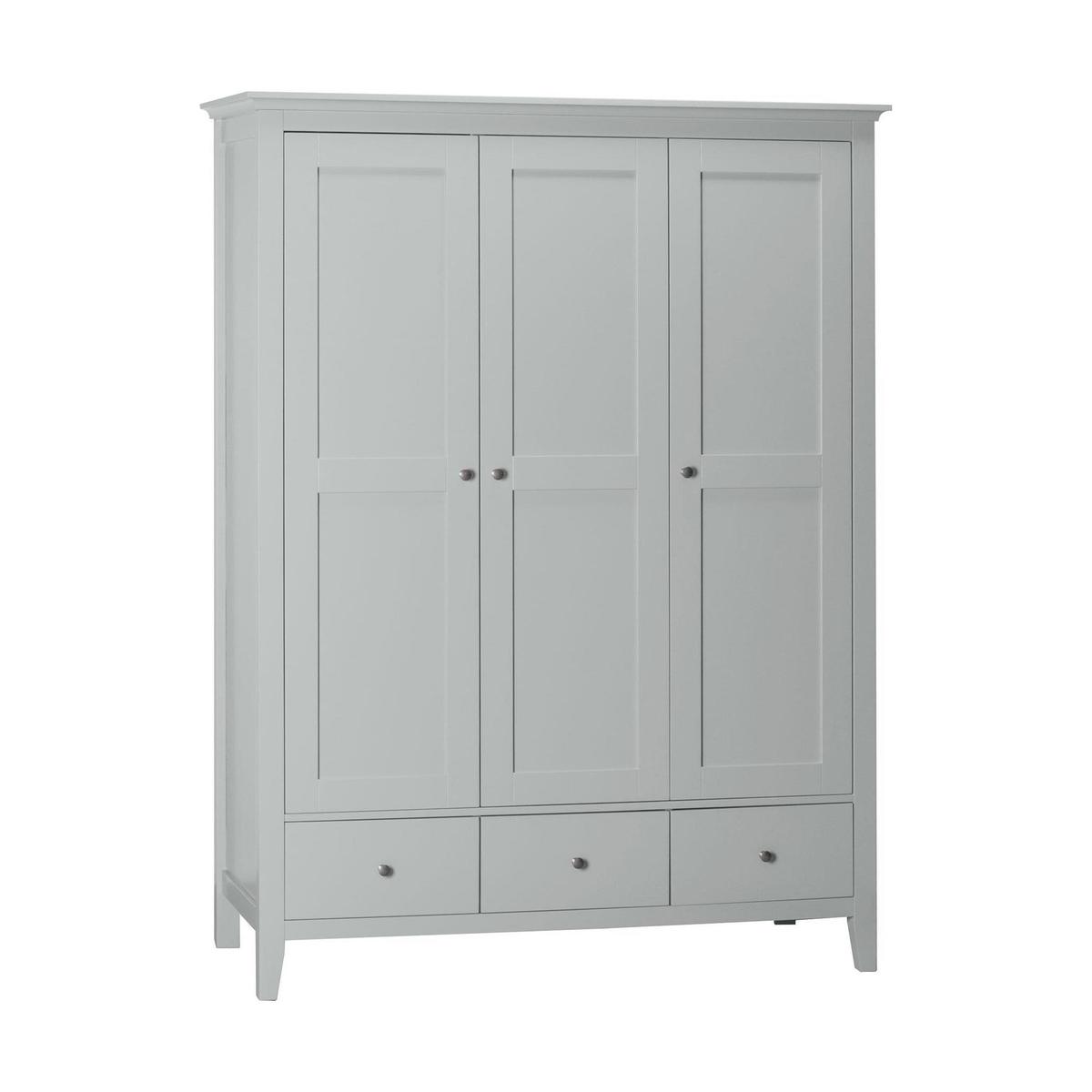 Dunelm Exclusive - Designed and Developed by Dunelm Beautifully crafted in a seamless lacquer coated finish, the Lynton range offers a classic country house styling with a simplistic design. This self-assembly range is sure to add an elegant and a traditional touch to your home. Fashioned with a Grey painted finish and brushed pewter handles, this wardrobe offers ample storage space with a double door and a single side cupboard equipped with a hanging rail. Designed to maximise storage space, this triple wardrobe features a wide and a small drawer for additional storage.