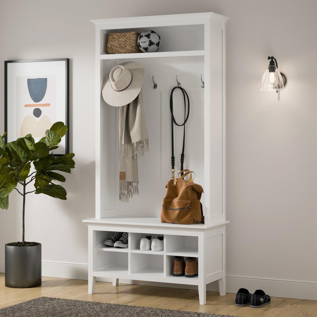 I love the Lynton hallway unit for its clean, minimalist design and practicality. Its crisp white finish makes it versatile, working particularly well in contemporary or Scandi-inspired interiors, and it can also add a fresh touch to more traditional spaces. The open shelves and small compartments offer handy storage for shoes, hats, and accessories, keeping clutter at bay, while the coat hooks are perfect for grabbing your essentials on the way out. To style it effectively, consider adding a decorative basket or a plant on top to soften the look, and keep everyday items within reach but organised. It’s an effortless way to keep your hallway tidy without compromising on style.