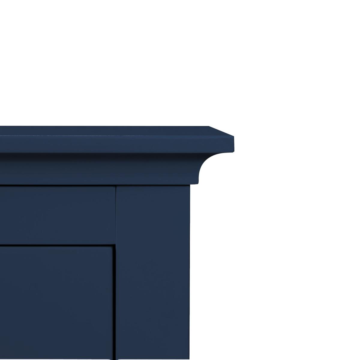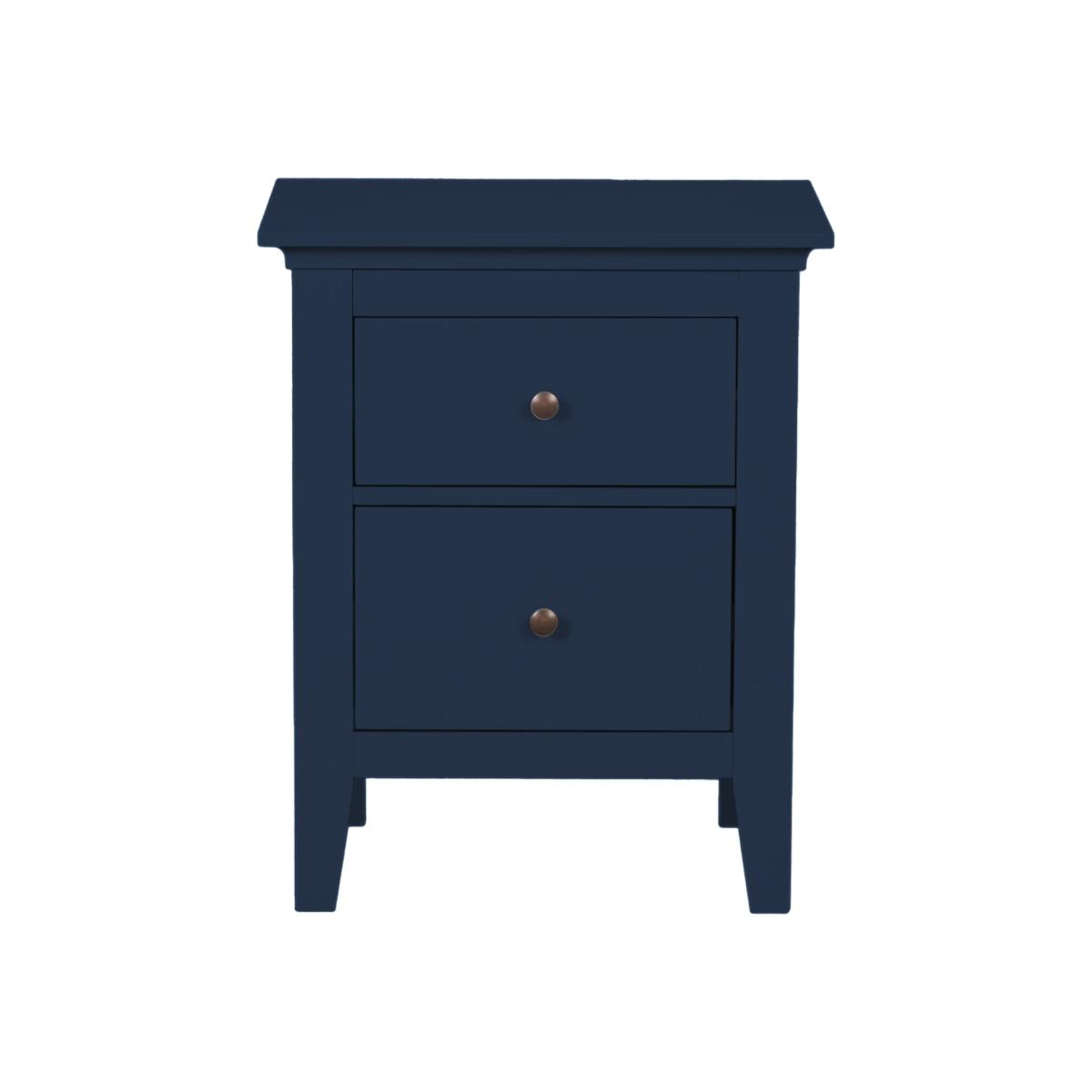 I’m a fan of this navy bedside for its deep indigo tone and clean, pared-back lines - it brings a quiet sophistication without overwhelming a room. It sits comfortably in coastal schemes, Scandi-inspired spaces or more contemporary bedrooms, and the two drawers offer useful stow-away storage for bedtime essentials. For styling, top it with a simple brass or matte black lamp and a small stack of books, then add a ceramic pot or sculptural object to introduce texture. If you want a lighter contrast, pair it with ivory linens or a soft grey rug to let the navy really pop.