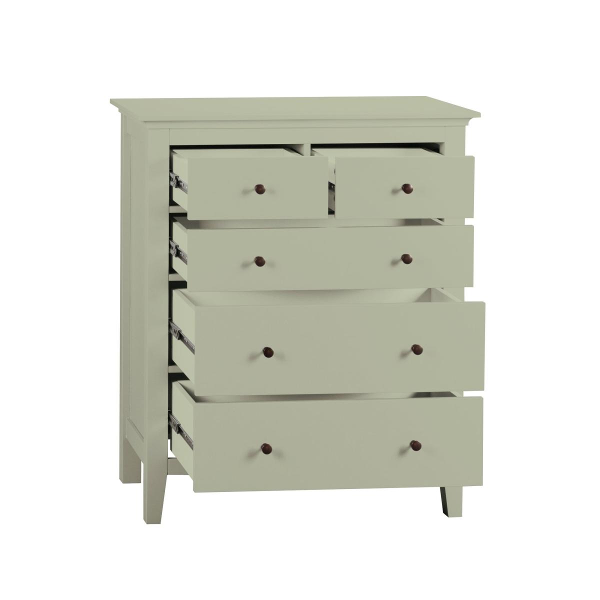 Dunelm Exclusive - Designed and Developed by Dunelm. The elegant, timeless design of the Lynton 5 Drawer Chest pairs beautifully with both traditional or modern decor and is sure to be a favourite within the home. The seamless painted finish is paired with black, metal handles and chunky wooden legs for stability. The Lynton drawer chest features 3 large drawers and 2 smaller drawers to provide a generous amount of storage space.