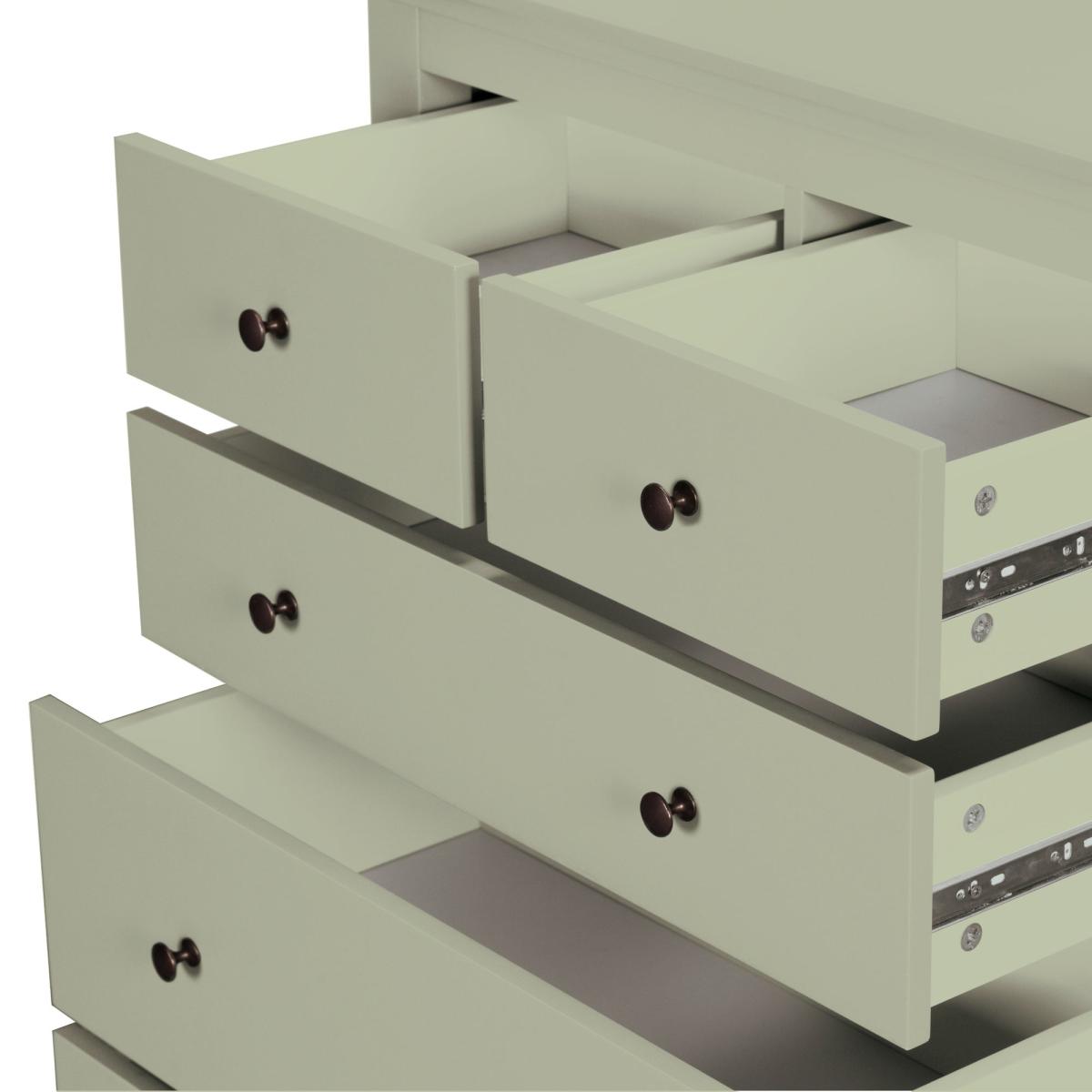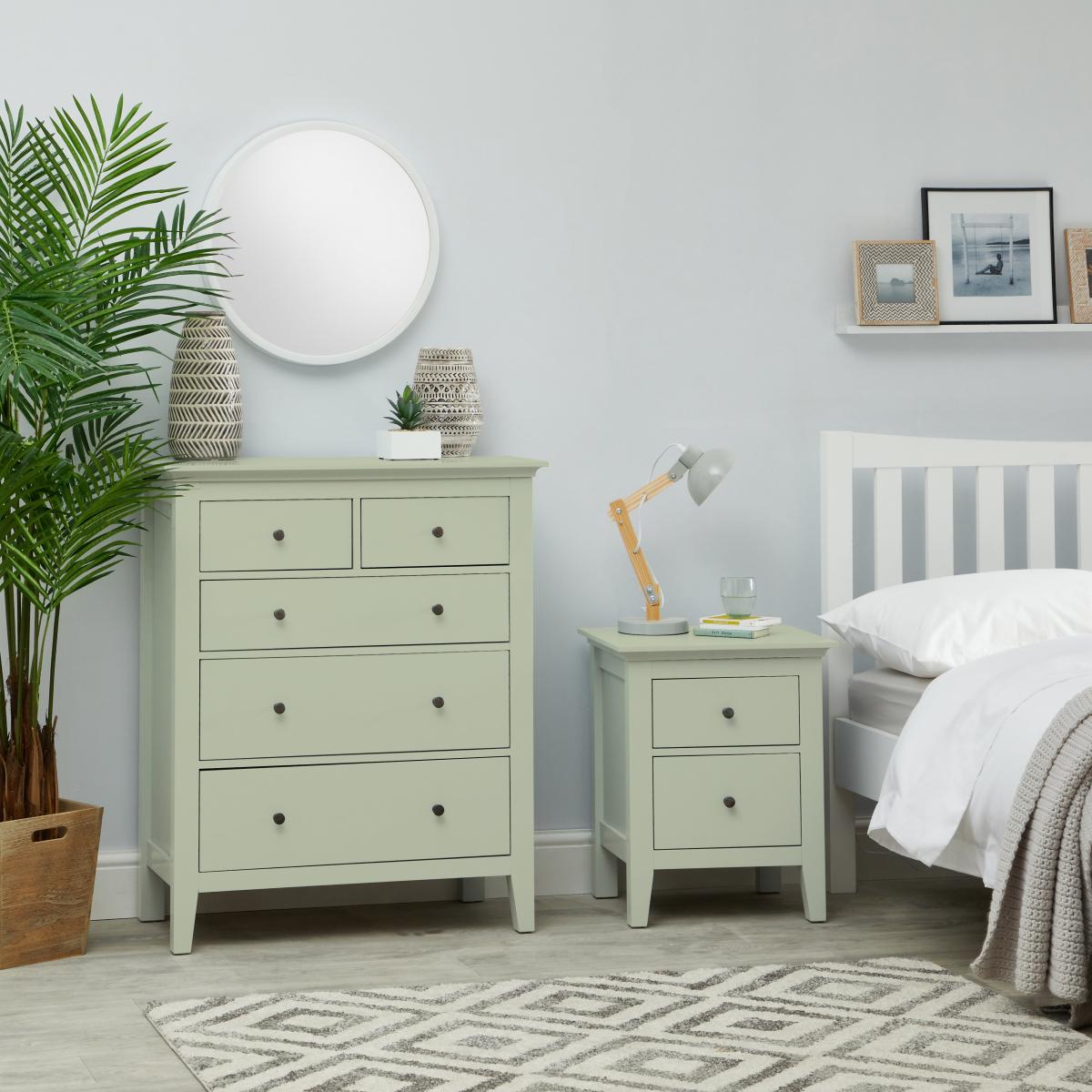 I’m a fan of this sage chest for its clean lines and muted green finish, which brings just the right dose of colour without feeling overpowering. It works beautifully in Scandi-inspired or modern country schemes, pairing well with light woods, rattan accents and crisp white walls. To style, top it with a ceramic table lamp and a small cluster of indoor plants for height variation. A round mirror above helps break up the straight edges, while neatly folded linens or storage baskets inside keep the look clutter-free.