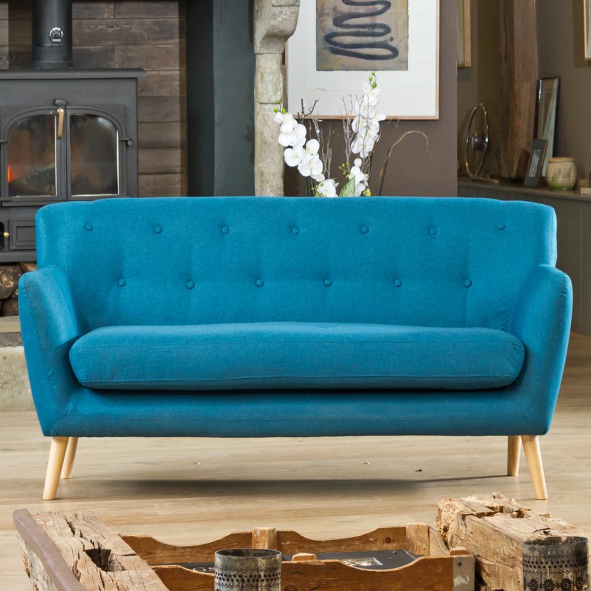 Lynwood 177cm Wide Scandi Style Hessian Fabric 3 Seat Sofa - Teal