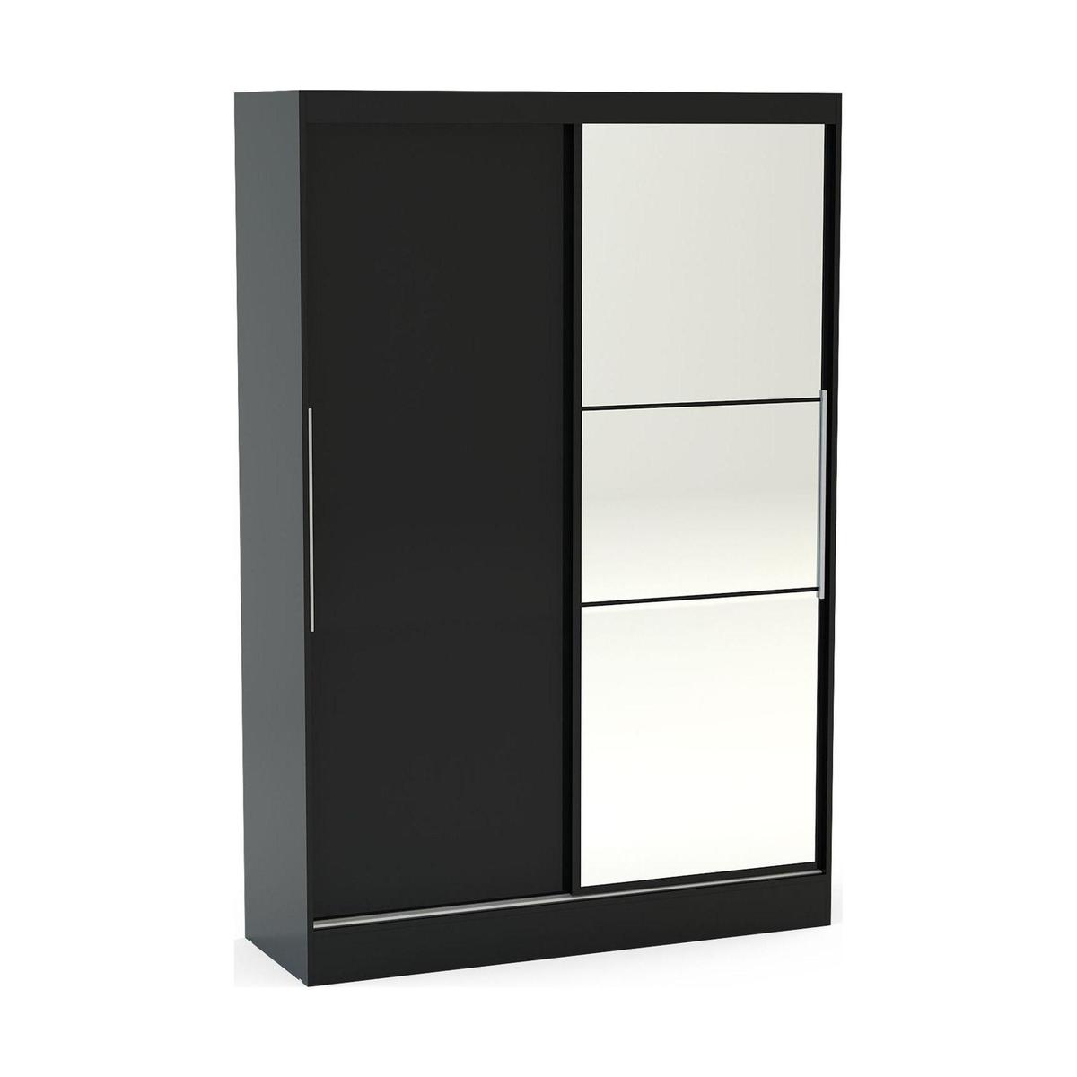 The Birlea Lynx Black 2 Door Mirrored Wardrobe is a great way of adding storage to your bedroom. This modern collection of bedroom furniture is finished in high gloss black with complimentary silver handles.