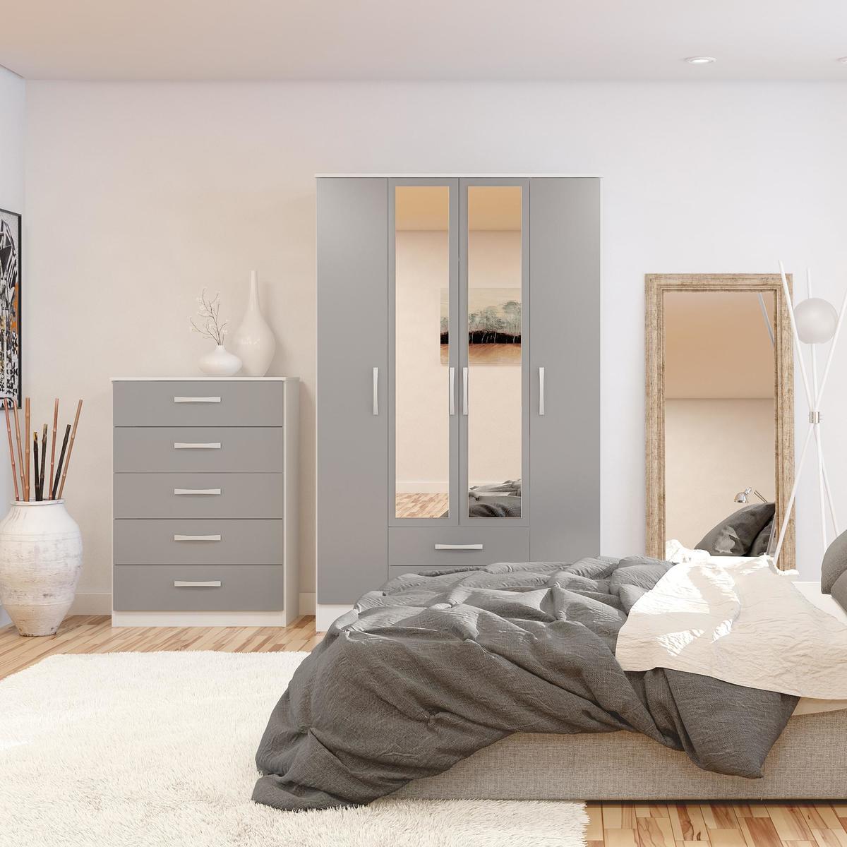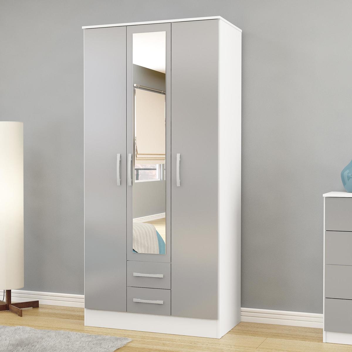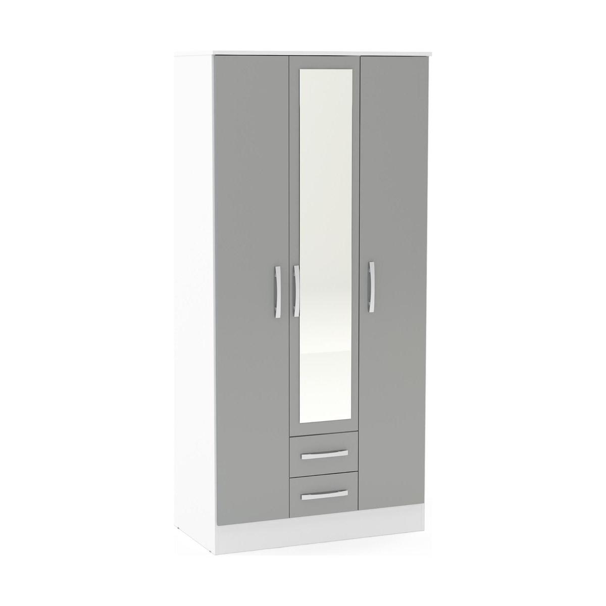 Lynx White and Grey Triple Mirrored Wardrobe Grey