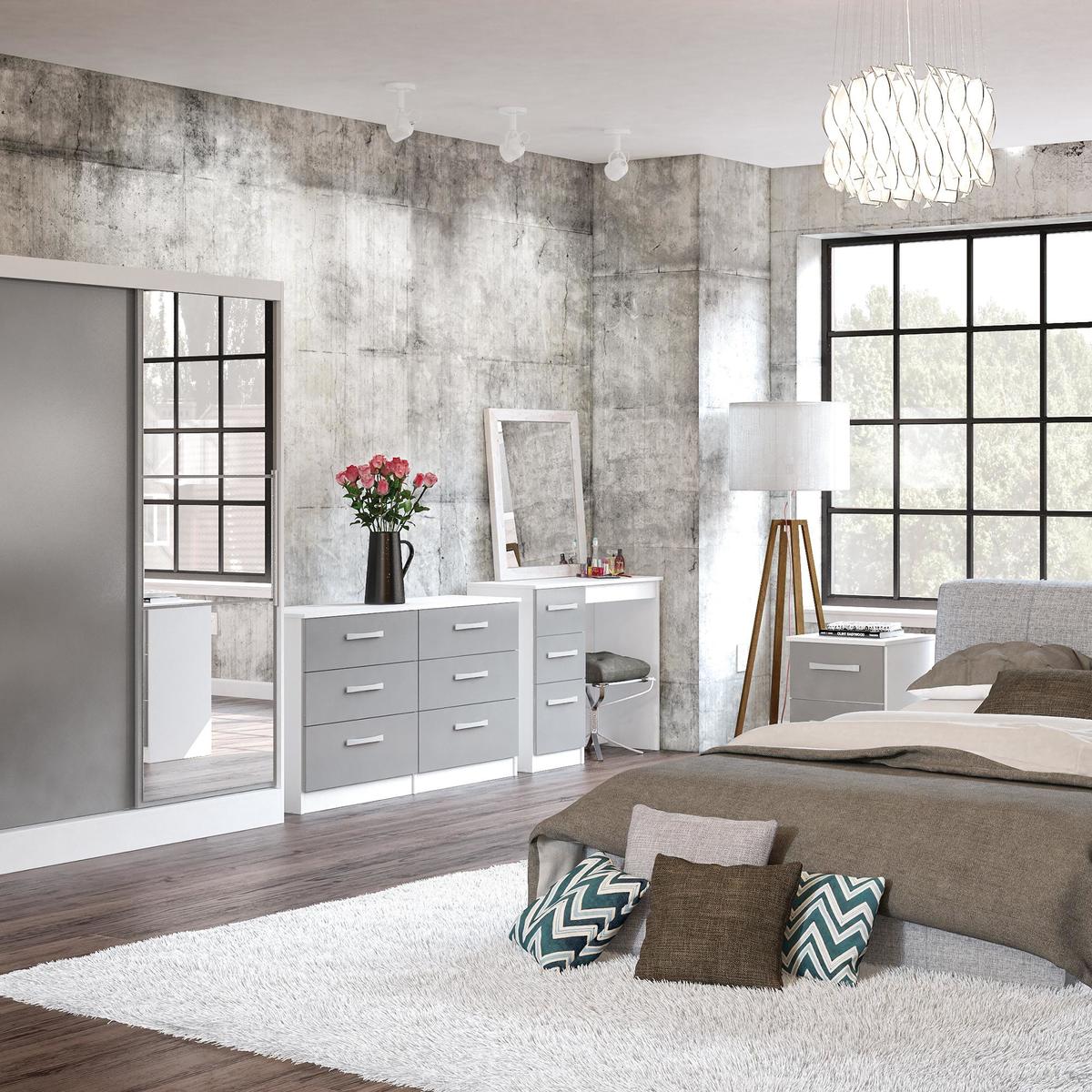 Modern and sleek, the Lynx three door wardrobe with mirror combines a high-gloss finish with bold silver detailing to make any space feel contemporary. Constructed from MDP, this high-quality wardrobe is incredibly sturdy and features a large top shelf as well as 4 smaller shelves that make it easy to keep your space organised. Complete with a sturdy hanging rail and 2 compact drawers to provide plenty of useful storage space. Care Instructions:Wipe clean with a soft cloth. Periodically check all screws and fixings to ensure they are secure and keep any sharp objects away. Always lift with two people to reposition, do not push as this will damage the base. Please note, unfortunately we cannot deliver this item to Northern Ireland or the Channel Islands.