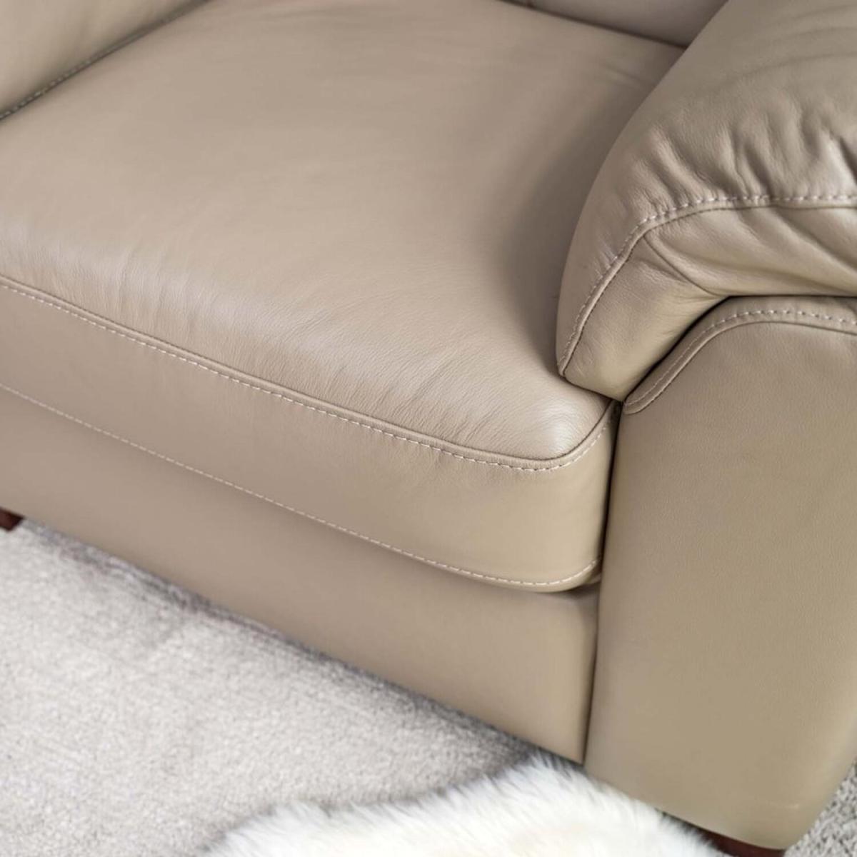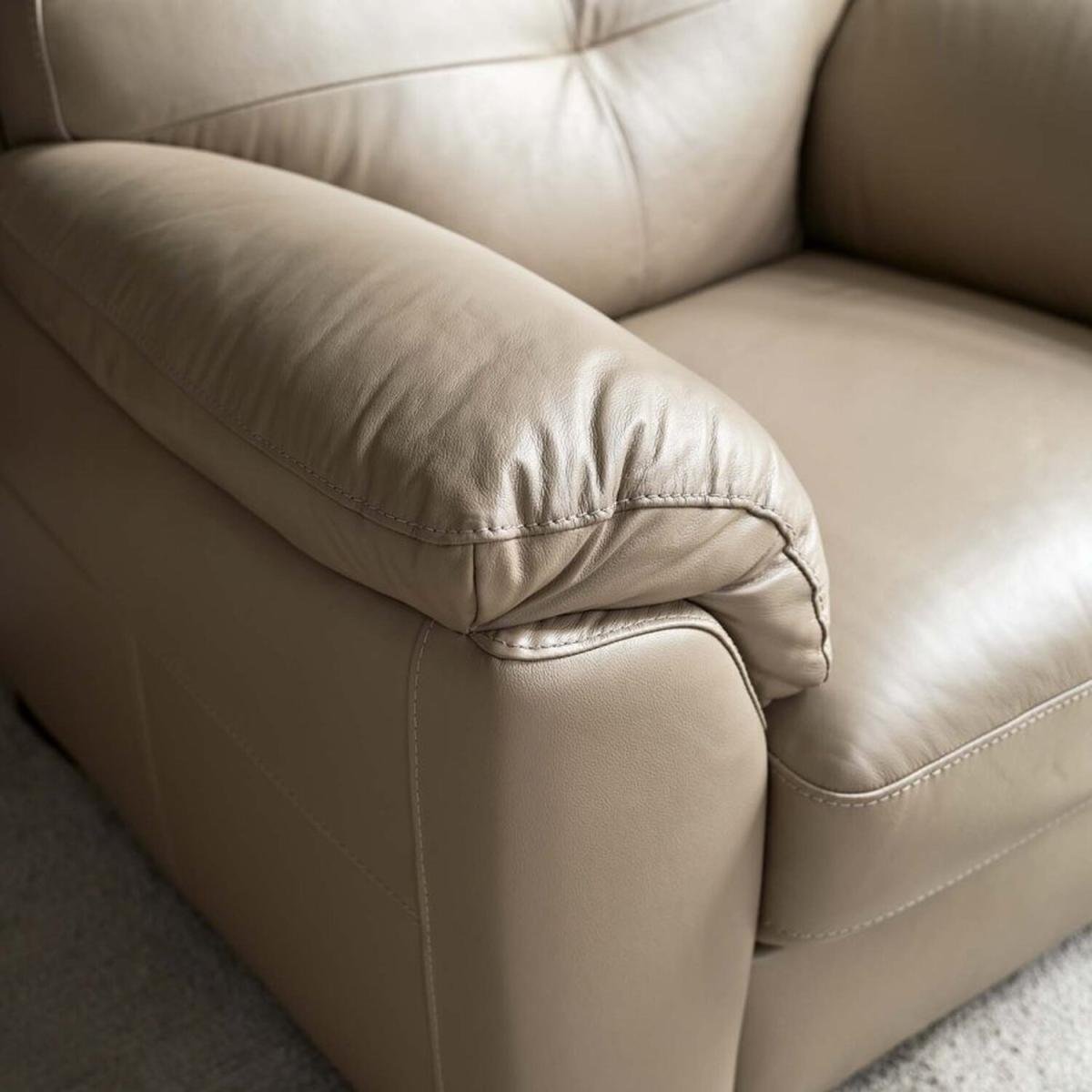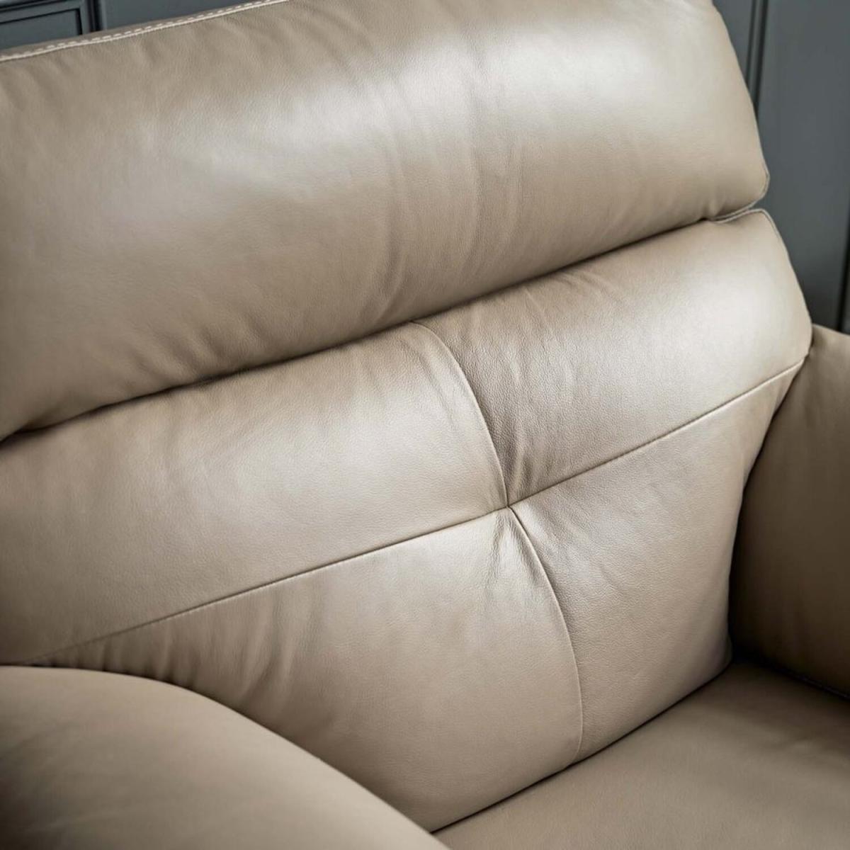 The Lyon Armchair is the best of traditional style. With beige 'mocha' coloured faux leather upholstery and block feet, this classic design will bring sophistication and class to any living room. This armchair is a super comfortable individual seat, with its sleek neutral tone making it the perfect fit for any lounge area.
