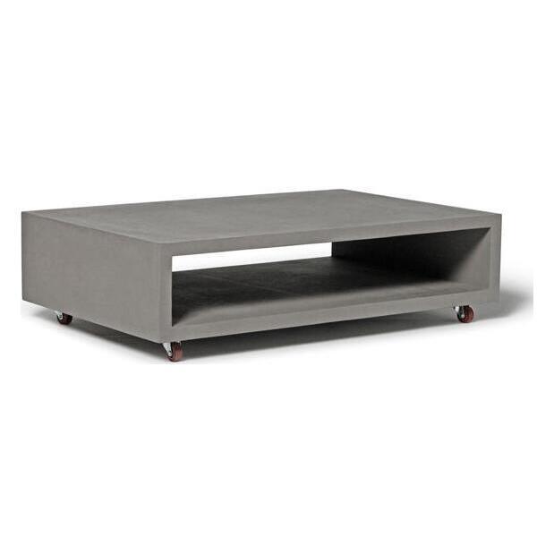 The Concrete Monobloc Rectangular Coffee Table features a minimalist design with functional usage that will effortlessly augment your arrangement with a touch of raw, industrial, modernism. Characterized by its simplistic qualities and practical aspects, the table makes for an easy fit with any arrangement while providing you with useful storage space and the ability to easily move the heavy piece out of the way when needed thanks to four swivel casters. Furnish your space with a coffee table unlike the others: a concrete coffee table!. Any pores, micro-cracks, and variations in colour are due to the material's inherent and charming nature. Please note this item is not suitable for use outdoor. Do not sit, stand or climb on this product. Tested for 60kg.