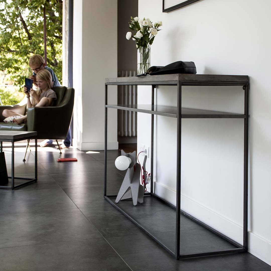 The concrete Perspective console has a long and clean geometric shape, with the top made out of concrete, the legs made from metal and two-tier design that provides ample storage. It could be a great addition to your living room, study, hallway, or bedroom against a wall. Any pores, micro-cracks, and variations in colour are due to the material's inherent and charming nature. Suitable for use outdoors under covered areas, away from direct rainfall and sun. We urge you to put in shelter during the “off season” under a. Veranda. Or ideally in a dry location. Don’t forget to clean, air dry prior to storing the furniture. If you leave your furniture outside during this period, it is imperative to cover it with a protective cover 100 % polyester coated with water-repellent : a waterproof, breathable, UV-resistant. You will find this type of covers in all DIY stores.
