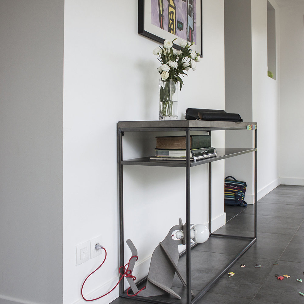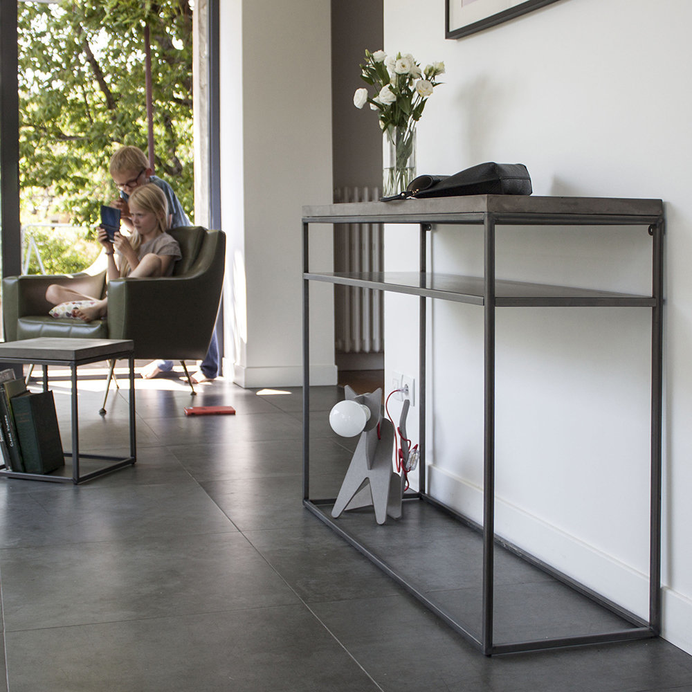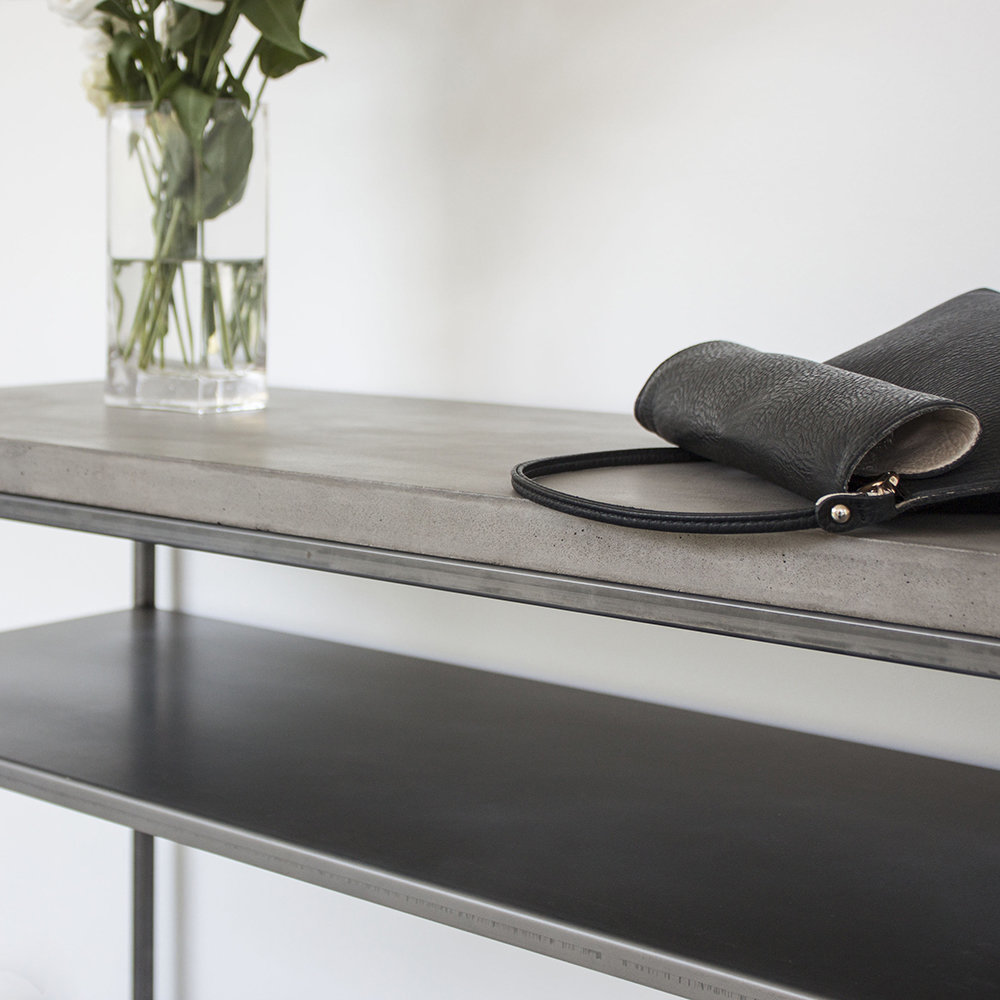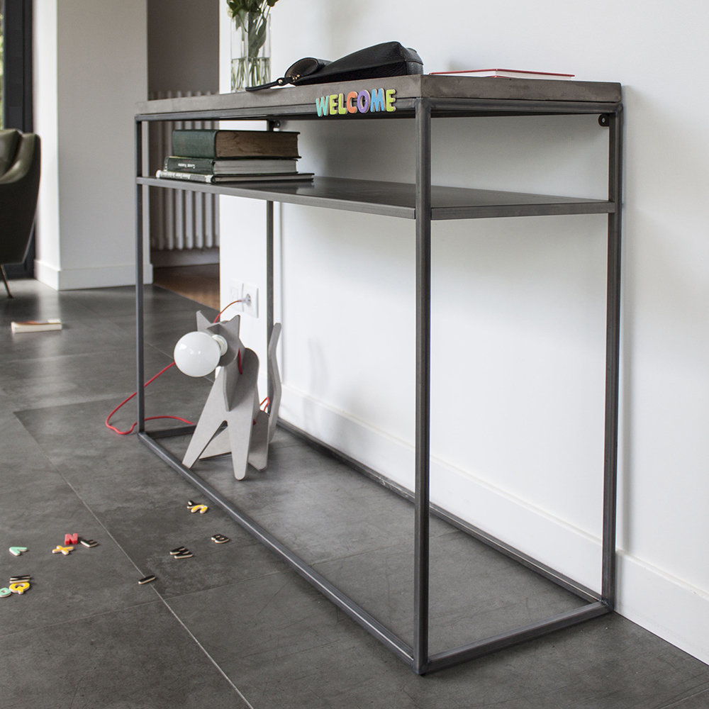 Bring some industrial chic to your home with this console from Lyon Beton. With a long and clean geometric shape, it features a shelf and concrete top. Ideal for your hallway, living room, study or bedroom.