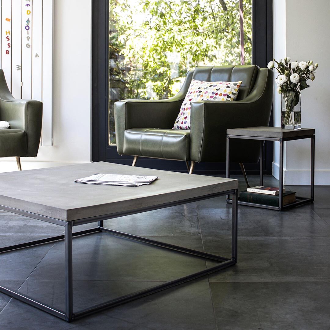The concrete Perspective coffee table will enhance your living room with his elegant and modernistic shape, mixing a metal frame with a concrete table top. With a square shape, this table is compatible and can be placed anywhere in your home. Available in two size options. Any pores, micro-cracks, and variations in colour are due to the material's inherent and charming nature. Suitable for use outdoors under covered areas, away from direct rainfall and sun. We urge you to put in shelter during the “off season” under a. Veranda. Or ideally in a dry location. Don’t forget to clean, air dry prior to storing the furniture. If you leave your furniture outside during this period, it is imperative to cover it with a protective cover 100 % polyester coated with water-repellent : a waterproof, breathable, UV-resistant. You will find this type of covers in all DIY stores. H: 30 x W: 100 x D: 100 cm.