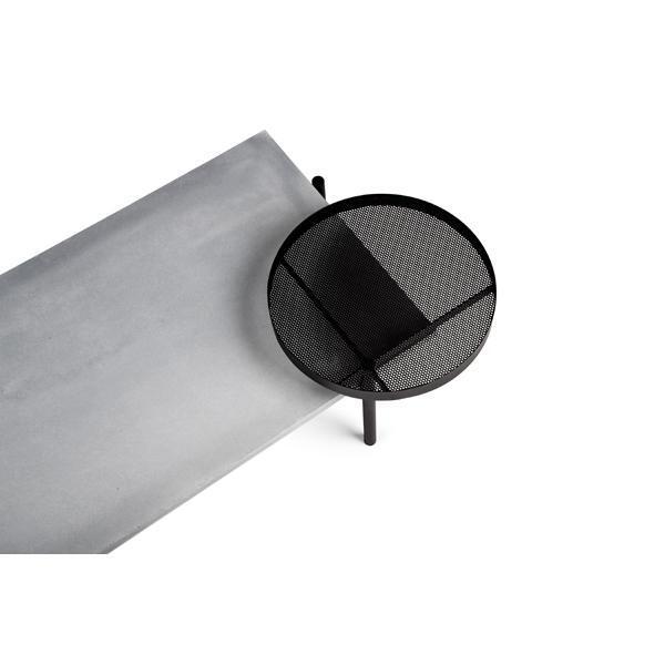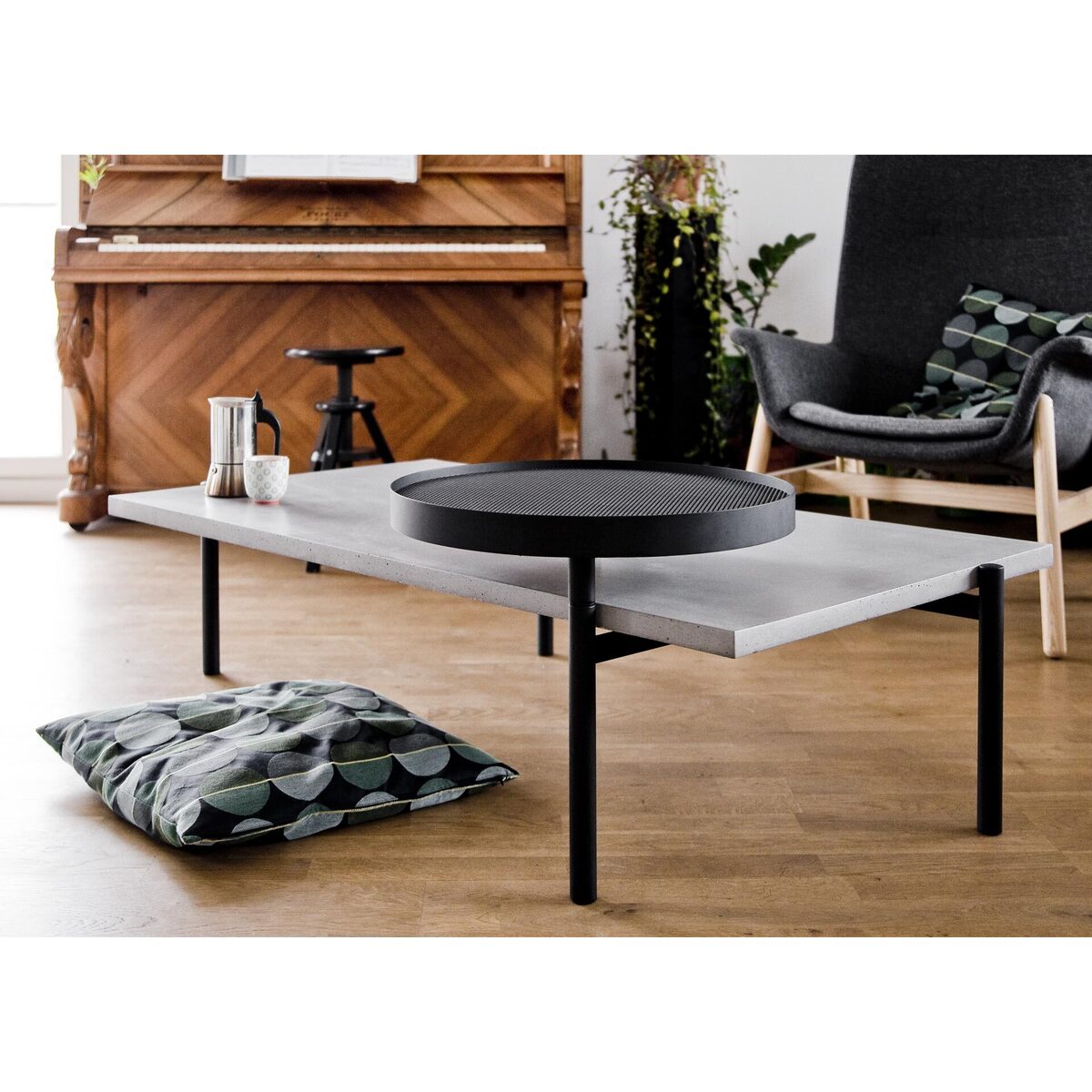 Alexandre Dubreuil designed for Lyon Béton a coffee table made of a concrete platform raised by a black lacquered metal base. The perforated metal plate rotates 360 ° to suit all your needs: drink with friends, TV diner, tablet or computer stand… It will soon become indispensable to you. Any pores, micro-cracks, and variations in colour are due to the material's inherent and charming nature. Suitable for use outdoors under covered areas, away from direct rainfall and sun. We urge you to put in shelter during the ″off season″ under a. Veranda. Or ideally in a dry location. Don't forget to clean, air dry prior to storing the furniture. If you leave your furniture outside during this period, it is imperative to cover it with a protective cover 100 % polyester coated with water-repellent : a waterproof, breathable, UV-resistant. You will find this type of covers in all DIY stores.