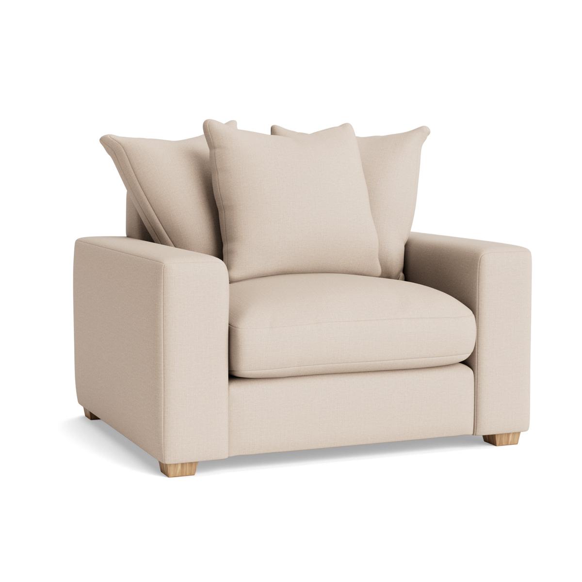 Our most extensive made to order range, the Lyon collection has something for everyone, with combinations to suit all homes, from open plan contemporary living spaces to cosy cottages and bijoux apartments. Modular in style, the Lyon range has bold and beautiful boxy lines with pillowy cushions and scatterback styling to cradle and support as you sit, recline or lounge. The Lyon Loveseat offers plenty space for two to snuggle or one to stretch out and can be placed individually or as part of a wider Lyon living room suite. The Lyon range includes a corner sofa, chaise sofa, three seater sofa, two seater sofa, loveseat and ottoman. Pictured here in our Oat cotton linen, our Lyon collection can be upholstered in a choice of 34 distinctive shades and six fabrics to suit your style. Read our Upholstery FAQs View our full Upholstery Terms and Conditions