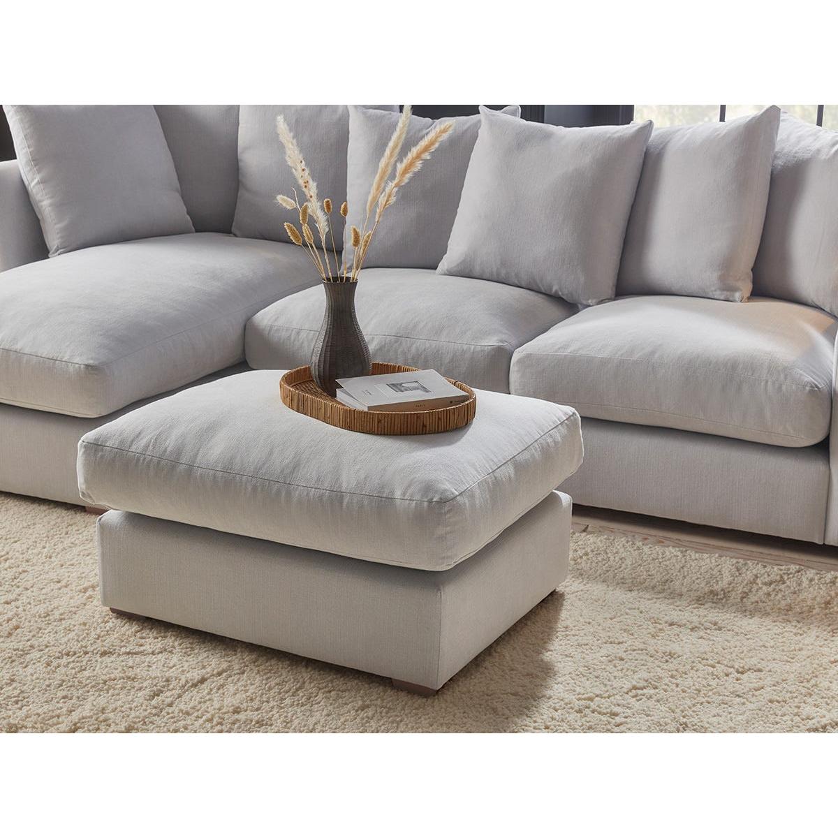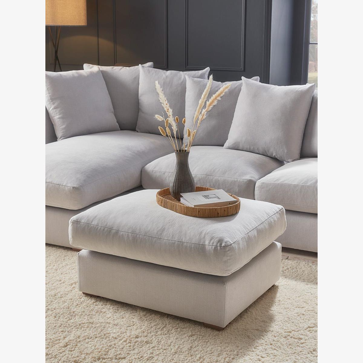 Our most extensive made to order range, the Lyon collection has something for everyone, with combinations to suit all homes, from open plan contemporary living spaces to cosy cottages and bijoux apartments. Modular in style, the Lyon range has bold and beautiful boxy lines with pillowy cushions and scatterback styling to cradle and support as you sit, recline or lounge. Our Lyon ottoman makes the perfect finishing touch to your living room layout, offering an extra perch, space to put your feet up or room to rest a tray. The Lyon range includes a corner sofa, chaise sofa, three seater sofa, two seater sofa, loveseat and ottoman. Pictured here in our Smoke cotton linen, our Lyon collection can be upholstered in a choice of 34 distinctive shades and six fabrics to suit your style. Read our Upholstery FAQs View our full Upholstery Terms and Conditions