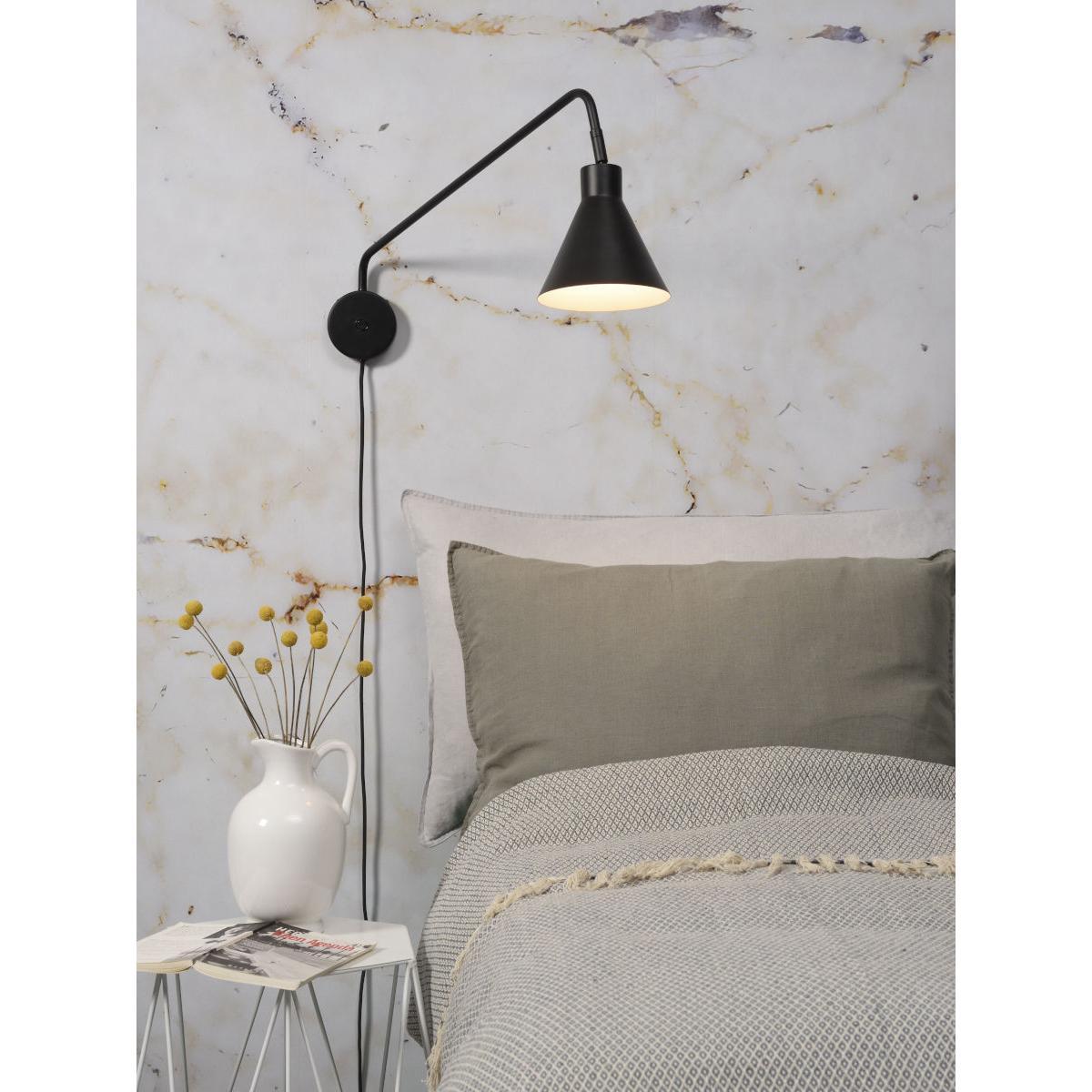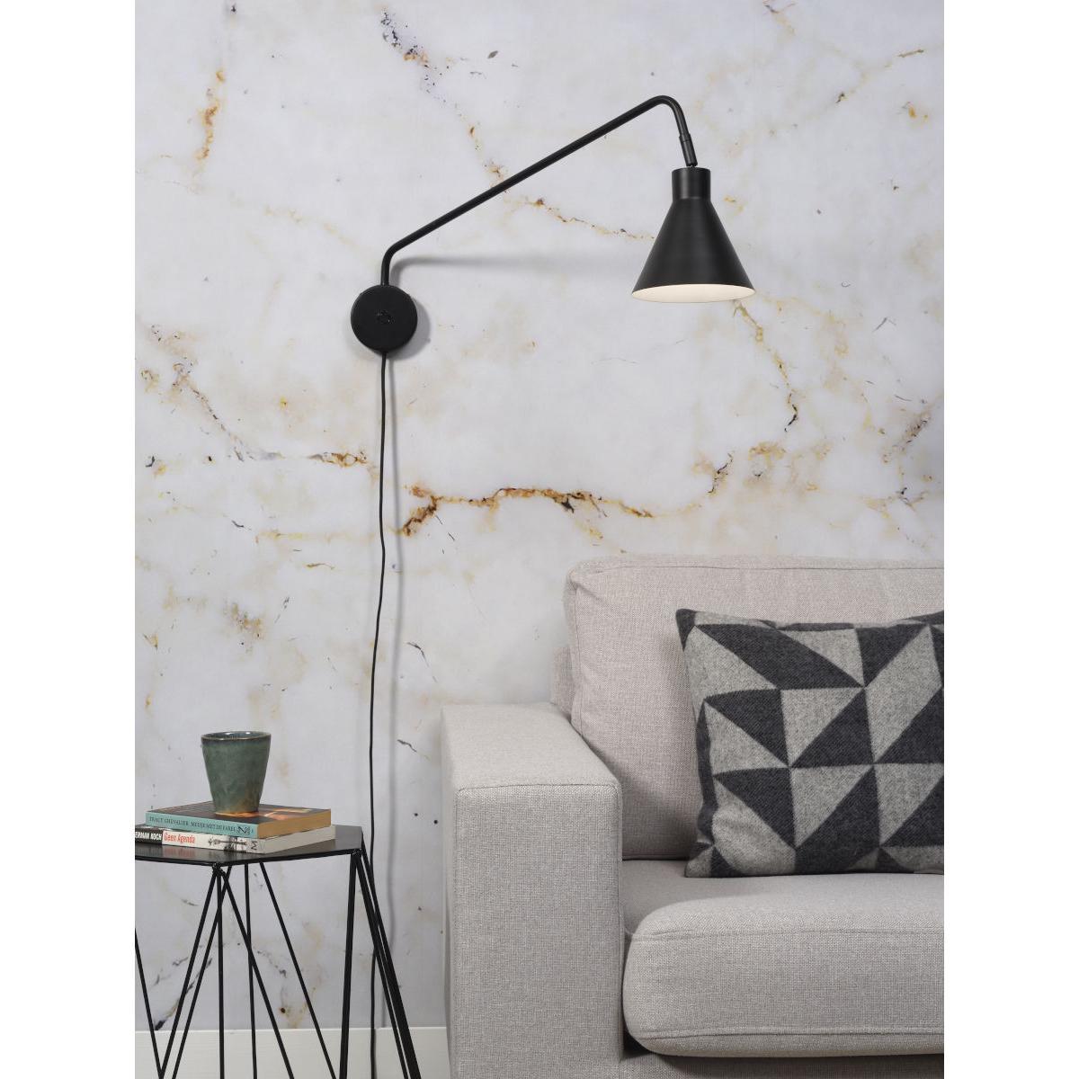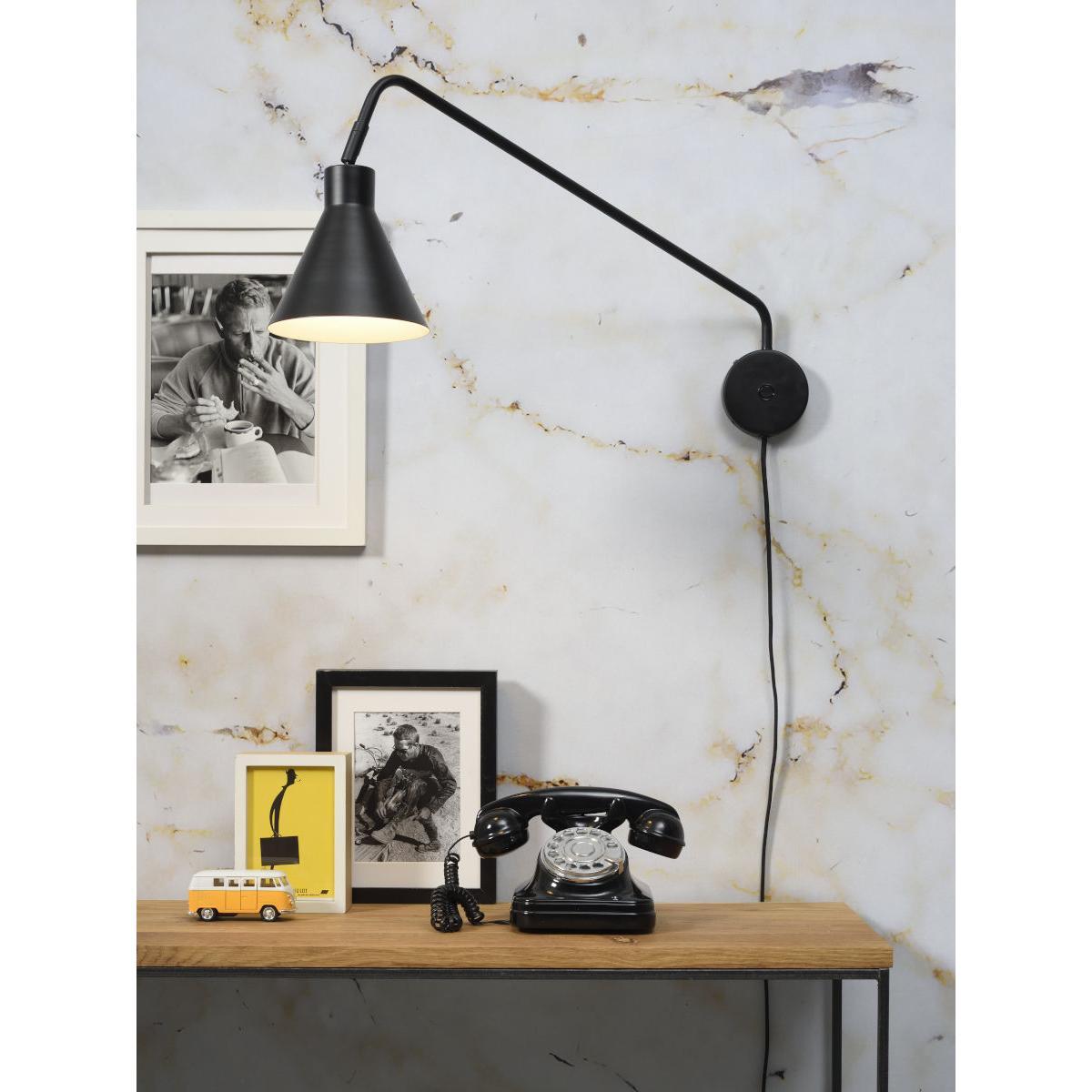 This metal wall lamp has a vintage look inspired by the lights of the 1950s. The long, curved arm and elaborate shape of the lampshade give this lamp a sophisticated and timeless feel, worthy of the greatest design icons. The adjustable lampshade and swivel arm let you direct the light with precision. The long arm (L 70 cm) pivots on the horizontal axis to direct the light flow as required with a simple movement of the hand. So you can place the shade above you whatever you’re doing: reading in an armchair, eating around a table. This wall light is a good alternative to a pendant, or even a floor lamp.