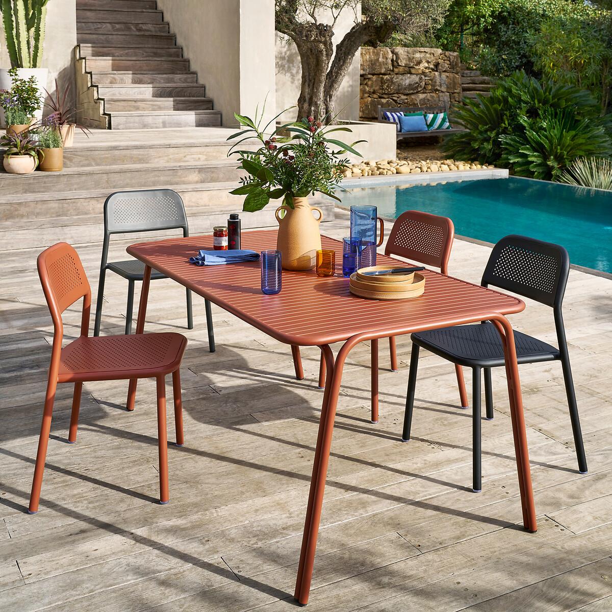 I love this set of garden chairs for their sleek aluminium design and warm terracotta hue, making them both practical and stylish. They work especially well in modern or minimalist garden settings, providing a contemporary touch to outdoor dining spaces. To style them effectively, consider pairing with a neutral or patterned outdoor table and adding cushions in complementary colours for added comfort and visual interest. Their lightweight frame makes them easy to move around, so they’re perfect for flexible outdoor entertaining. Overall, they bring a chic, durable option to outdoor dining that elevates any terrace or patio.