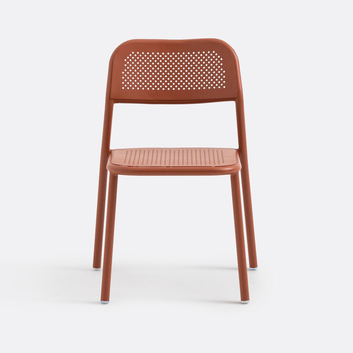 A must-have for outdoor furniture, the Lyona openwork aluminium chairs are the perfect match for contemporary living rooms and will brighten up your outdoors. Comfortable, lightweight and easy to handle. Stackable, they are easy to store in a minimum of space. Product Details • In aluminium • Perforated back and seat • Stackable • Sold in packs of 2. Quality • Aluminum offers the advantage of not rusting. Easy to clean, it can be washed with soapy water. This material is ideal for outdoor furniture. This lightweight table is easy to carry and store. Dimensions • Width: 59cm • Height: 84cm • Depth: 50cm • Seat:W59 x H47 x D50cm • Weight: 3.9kg • Sold pre-assembled. Parcel Dimensions1 parcel • W100 x H190 x D58cm. 86.5kg