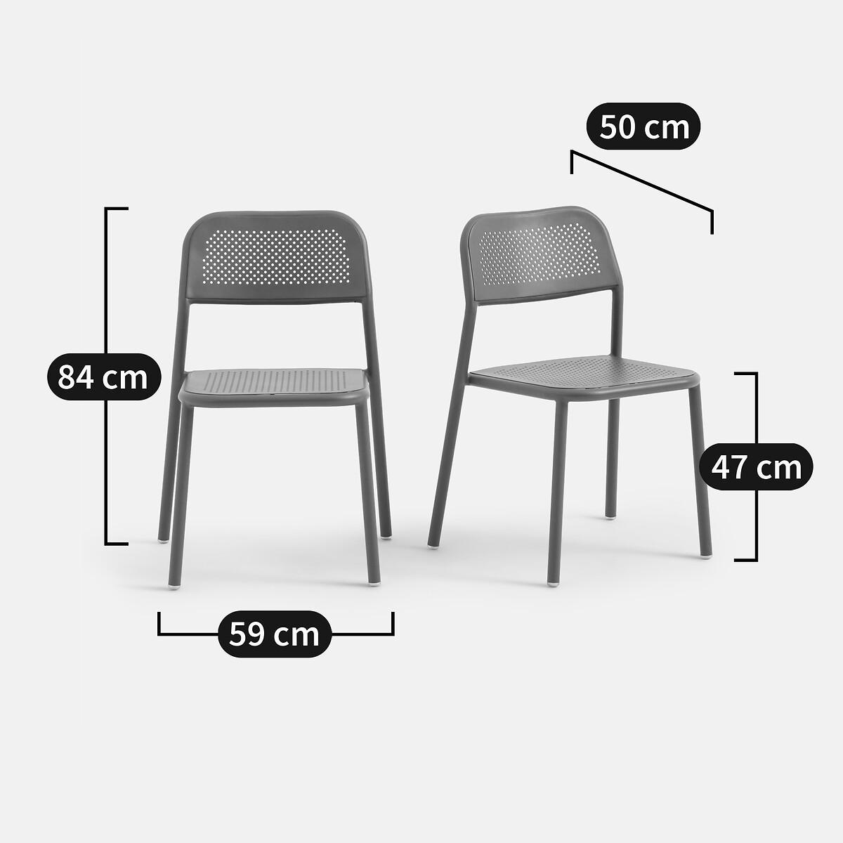 A must-have for outdoor furniture, the Lyona openwork aluminium chairs are the perfect match for contemporary living rooms and will brighten up your outdoors. Comfortable, lightweight and easy to handle. Stackable, they are easy to store in a minimum of space. Product Details • In aluminium • Perforated back and seat • Stackable • Sold in packs of 2. Quality • Aluminum offers the advantage of not rusting. Easy to clean, it can be washed with soapy water. This material is ideal for outdoor furniture. This lightweight table is easy to carry and store. Dimensions • Width: 59cm • Height: 84cm • Depth: 50cm • Seat:W59 x H47 x D50cm • Weight: 3.9kg • Sold pre-assembled. Parcel Dimensions1 parcel • W100 x H190 x D58cm. 86.5kg
