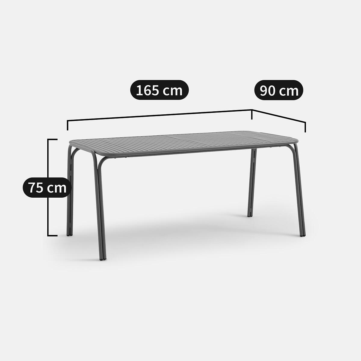 A must-have for outdoor furniture, here is the Lyona aluminium Garden Table. With its slatted Top and double tubular base, it has a sleek, contemporary design. It can seat up to 6 guests. Product Details • Aluminium frame and slats, epoxy finish. Diameter 25 mm tubes • Seats 4-6. Quality • Aluminum offers the advantage of not rusting. Easy to clean, it can be washed with soapy water. This material is ideal for outdoor furniture. This lightweight table is easy to carry and store. Dimensions • Length: 165cm • Height: 75cm • Depth: 90cm • Weight: 25kg • Sold pre-assembled. Parcel Dimensions1 parcel • W164 x H90 x D95 cm. 29kg