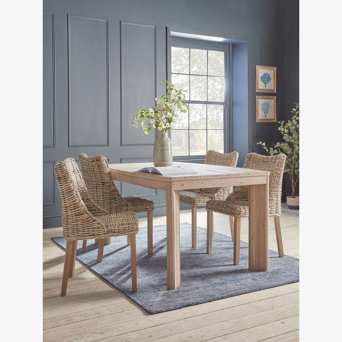 I’m a fan of the Lyra table for its clean lines and easy-to-operate extension, which makes it ideal for both everyday meals and occasional dinner parties. Its pale, brushed-oak finish sits comfortably in Scandi‐style, modern farmhouse or coastal interiors, offering a neutral base you can dress up or down. For styling, anchor it with a natural-fibre rug and mix in textured chairs - rattan or linen-upholstered work especially well. Keep your centrepiece simple: a stoneware vase with foraged foliage or dried grasses. When you need extra space, the extension slips out smoothly, so you’re always ready to entertain.