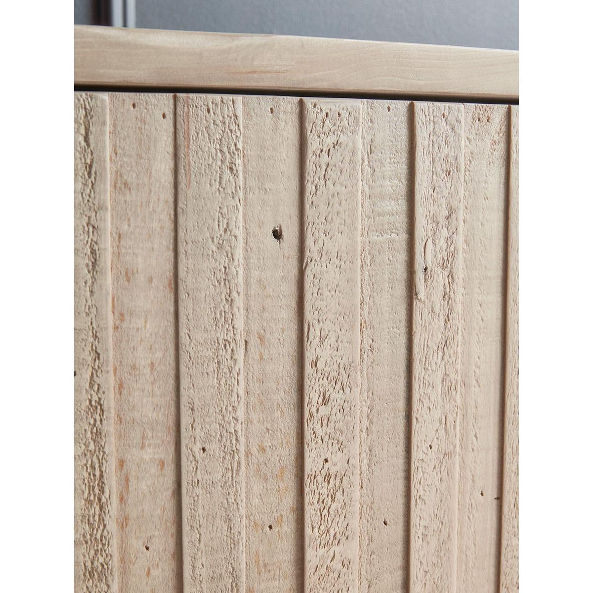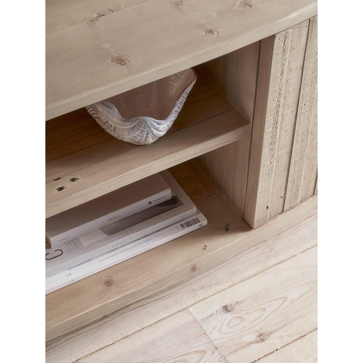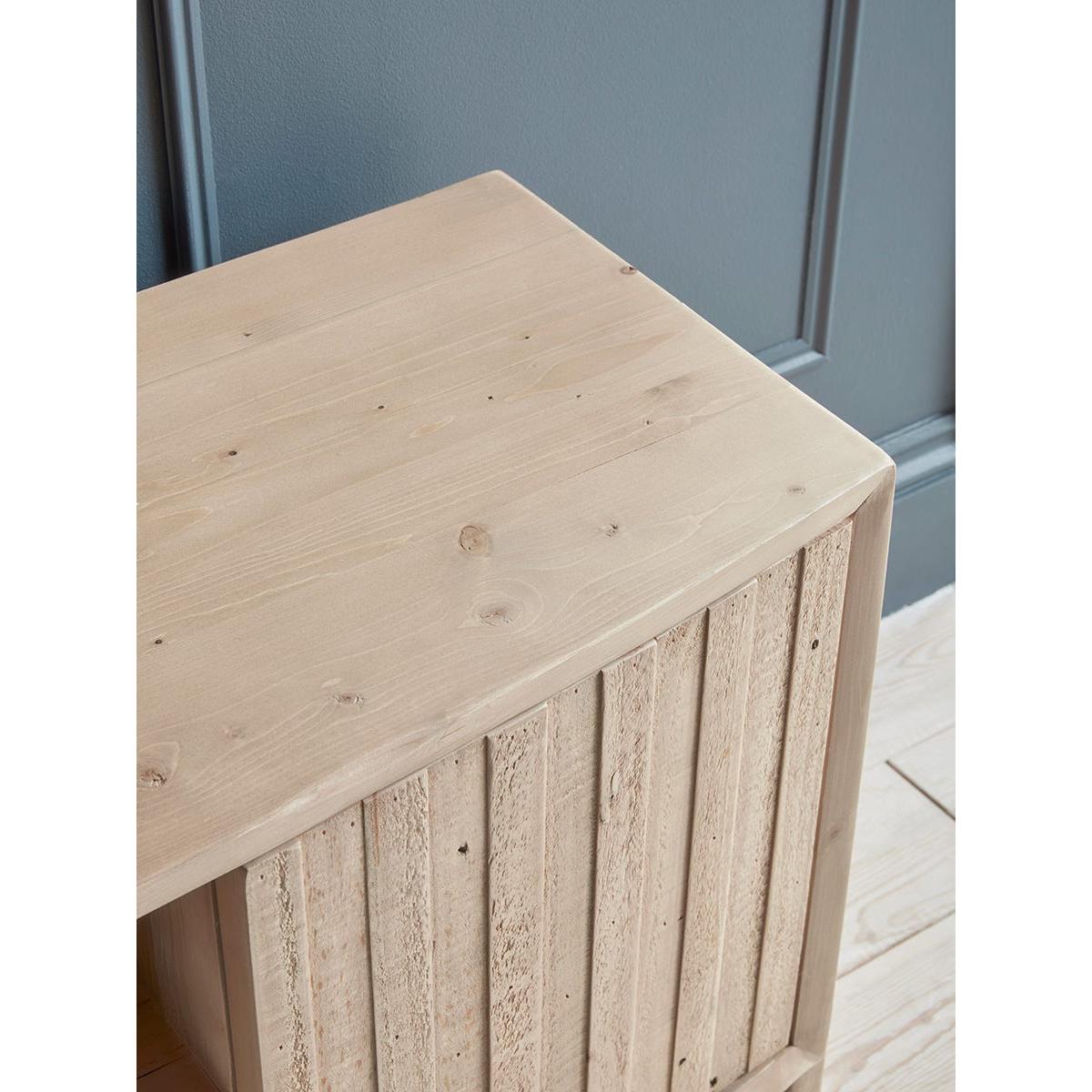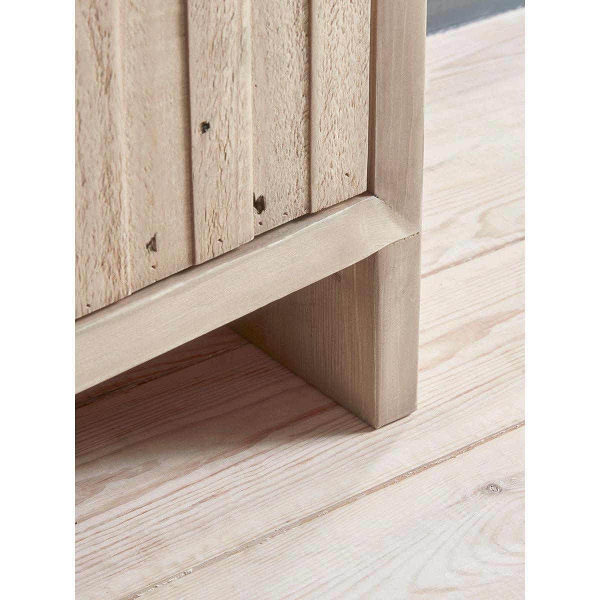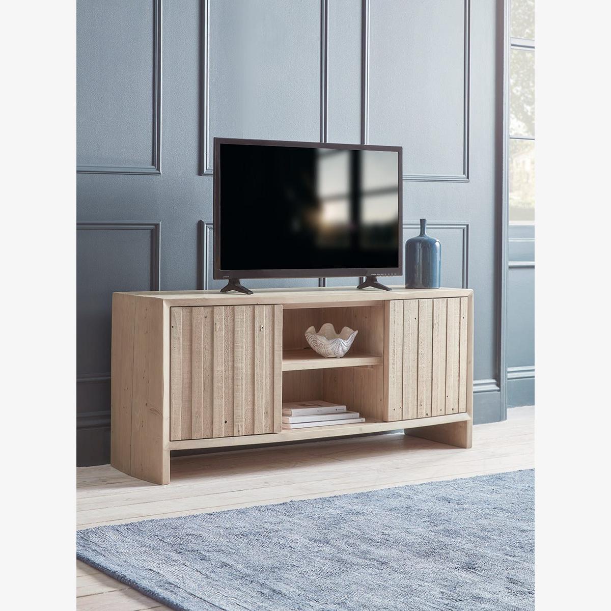 Our Lyra range fuses the natural soft tones and beauty of reclaimed wood with simple shapes defined by reeded door panels. The media cabinet offers three areas of storage. Two behind reeded cupboard doors with soft touch closures and a third shelving area to the centre which is ideal for additional media devices. Silky smooth tops and sides keep the look unfussy and relaxed, and the solid wood reveals all the richness of its former life.