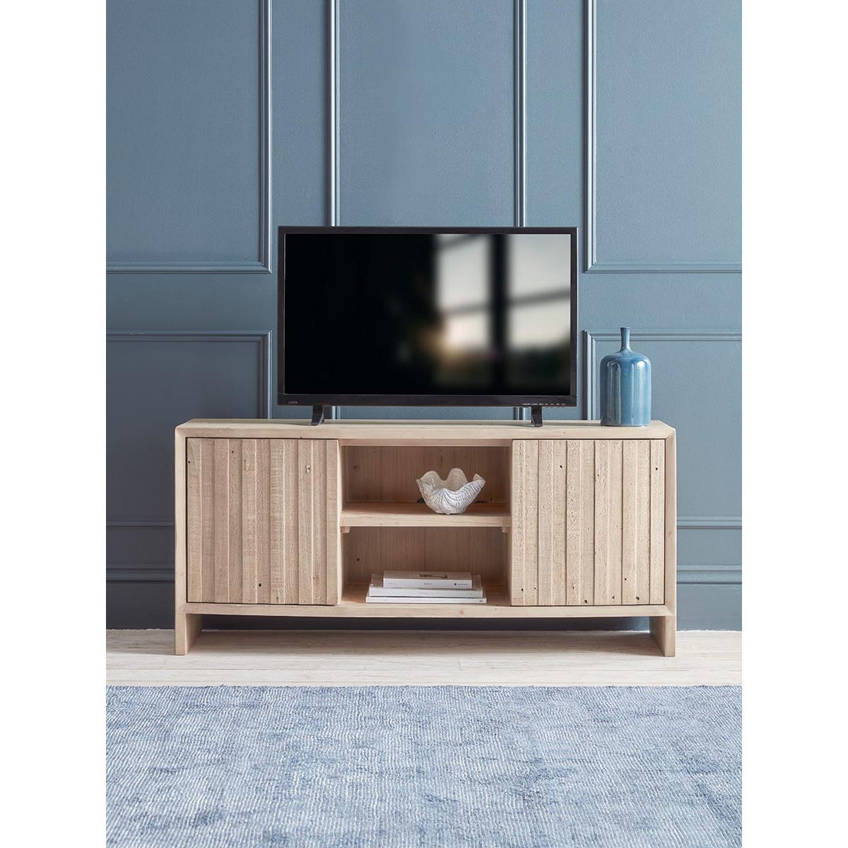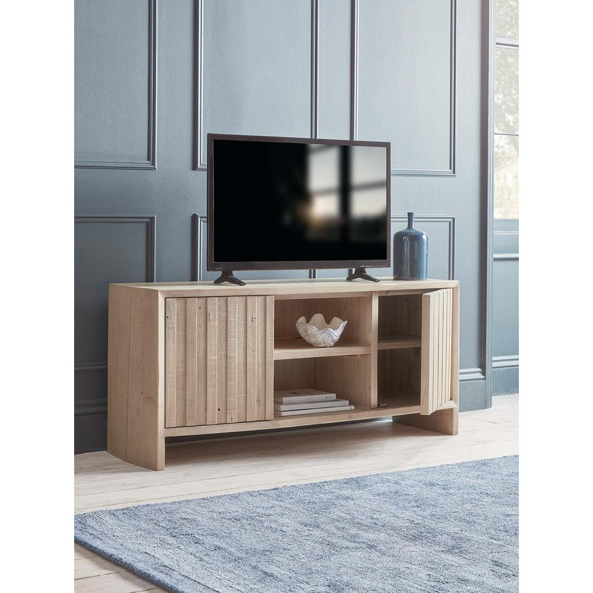 I’m a big fan of this Lyra stand for its clean lines and natural oak-effect finish, which slot neatly into Scandi-inspired, modern farmhouse or coastal schemes. The combination of slatted doors and a centre shelf means you can hide away consoles and cables while styling a couple of books or a simple vase in the middle. To keep the look fresh, balance height by placing a low-profile TV and a slender soundbar on top, then add a small plant or ceramic pot at one end. Inside the open shelf, stack coffee-table books horizontally and tuck a slim basket behind them to catch remotes.