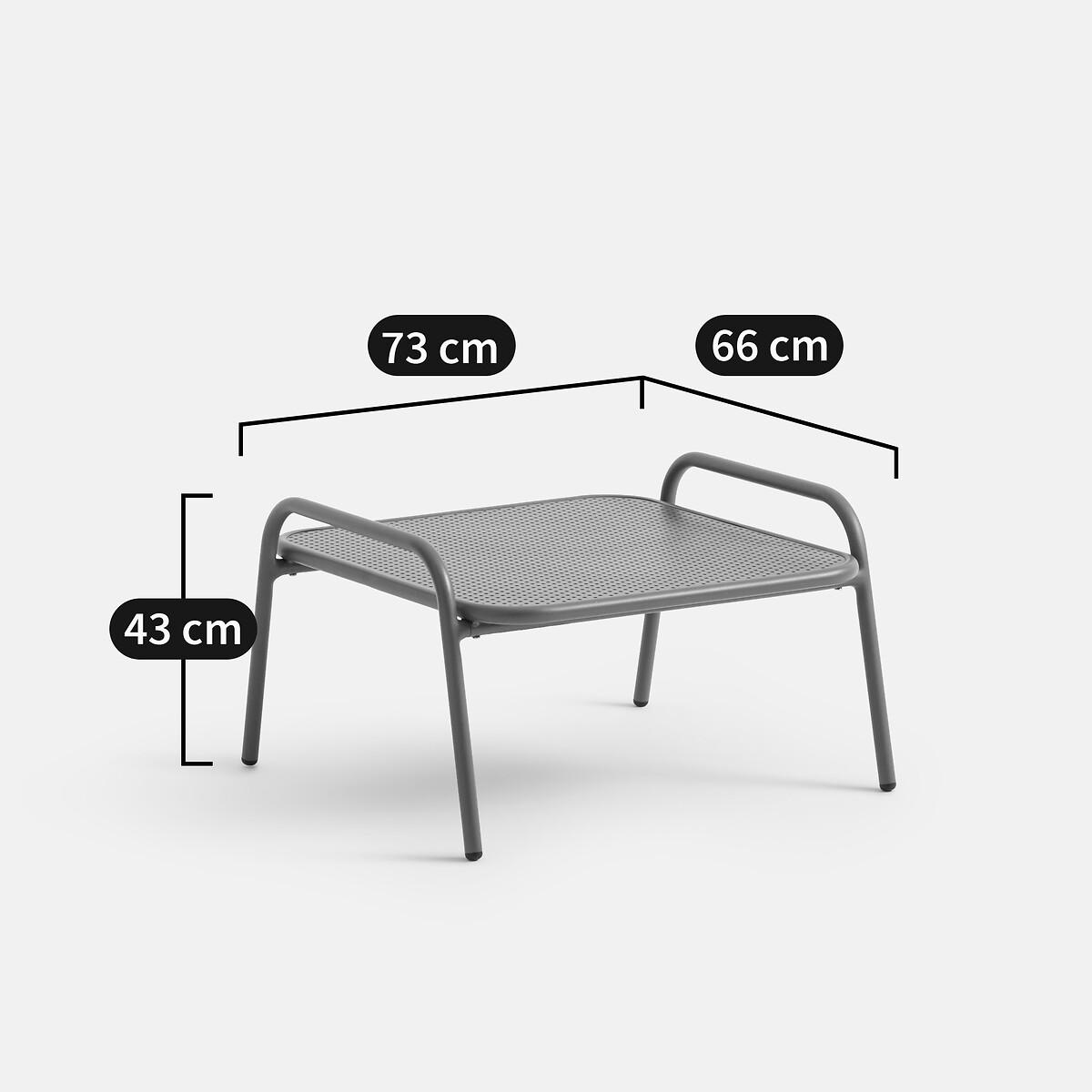 Designed in openwork aluminium, the Lysa Coffee Table combines lightness, manoeuvrability and contemporary design. It can also be used as a practical footrest. Combine it with the lounge armchair of the same name and enjoy moments of relaxation in the great outdoors. Product Details • Aluminium frame with an epoxy finish • Epoxy finish openwork aluminium frame • 2 side carrying handles. Quality • Aluminum offers the advantage of not rusting. Easy to clean, it can be washed with soapy water. This material is ideal for outdoor furniture. This lightweight table is easy to carry and store. Dimensions • Width: 73cm • Height: 43cm • Depth: 67cm • Weight: 4.3kg • Sold pre-assembled. Parcel Dimensions1 parcel • W69 x H10 x D69 cm. 5.75 kg