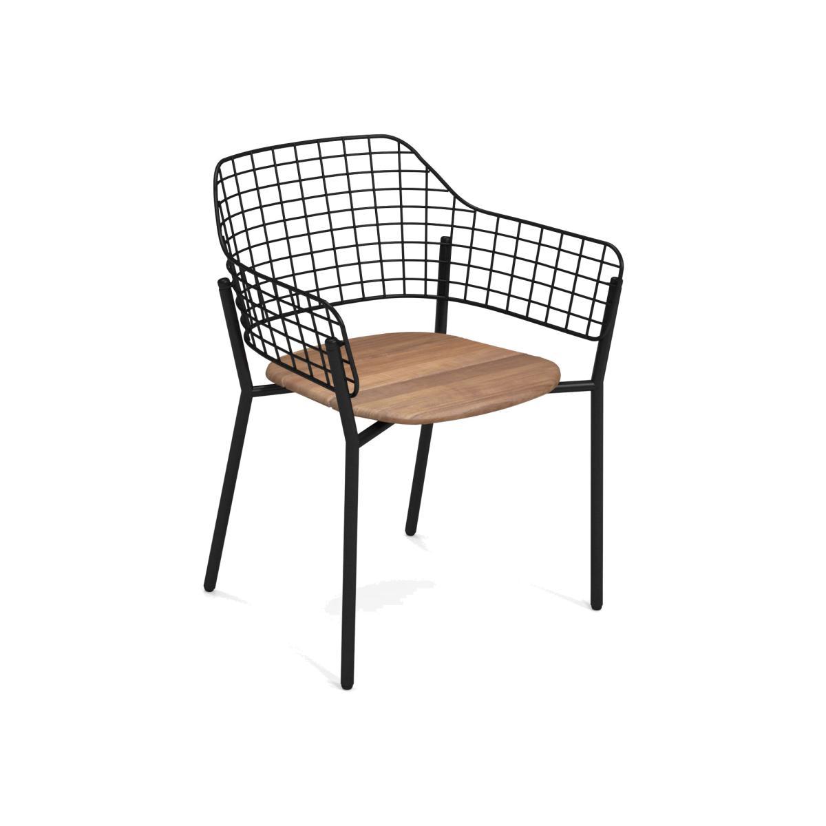 Lyze Stackable armchair - / Teak seat by Emu Black/Natural wood