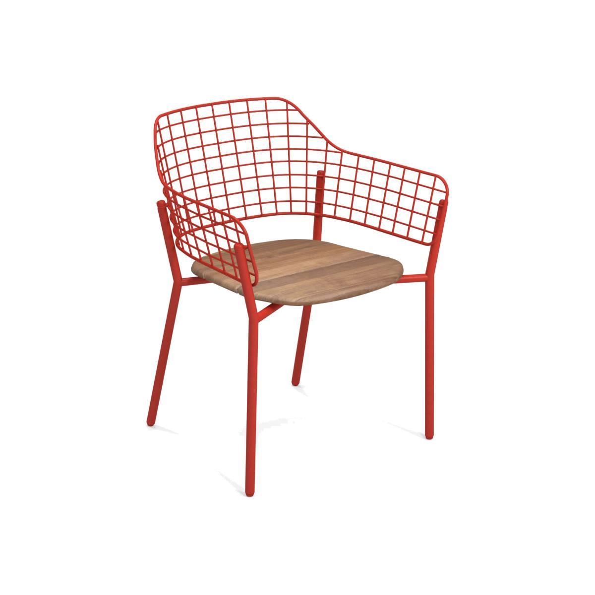 Lyze Stackable armchair - / Teak seat by Emu Red/Natural wood