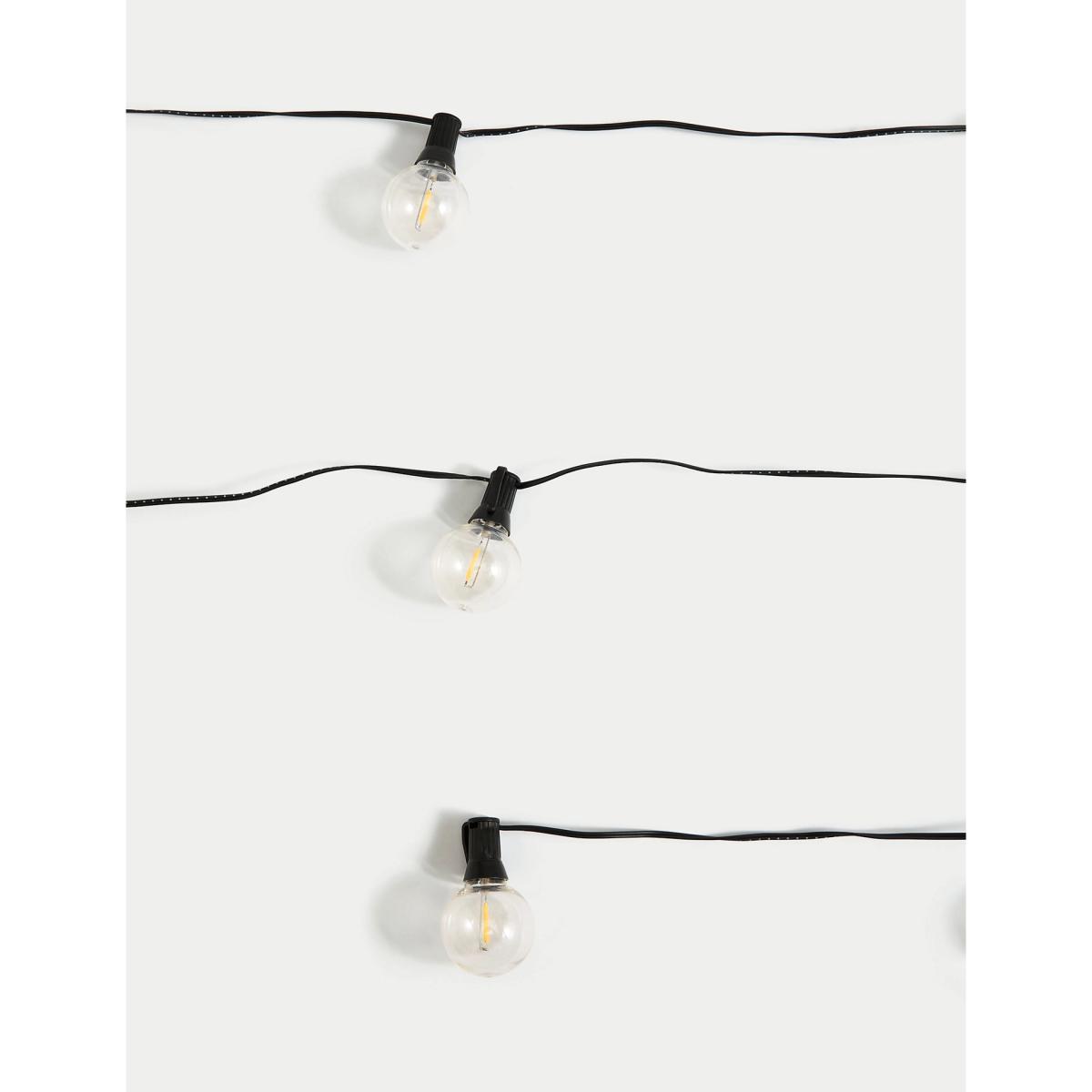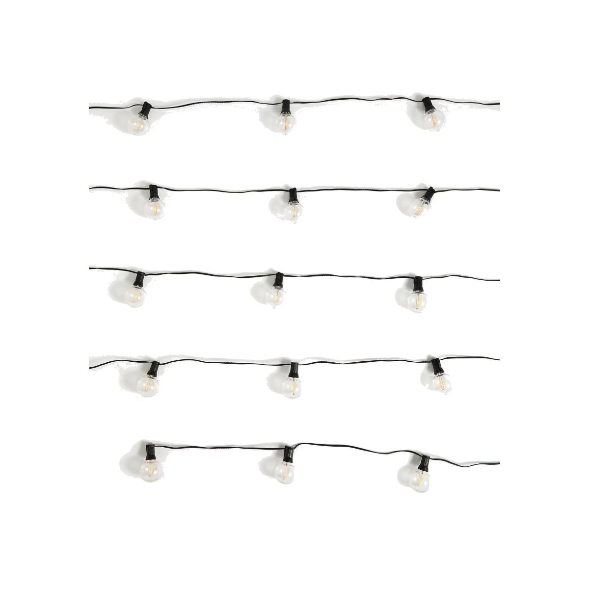 This string of 15 festoon lights will bring a welcoming glow to your outdoor space. Each round bulb is powered by solar for long-lasting use.