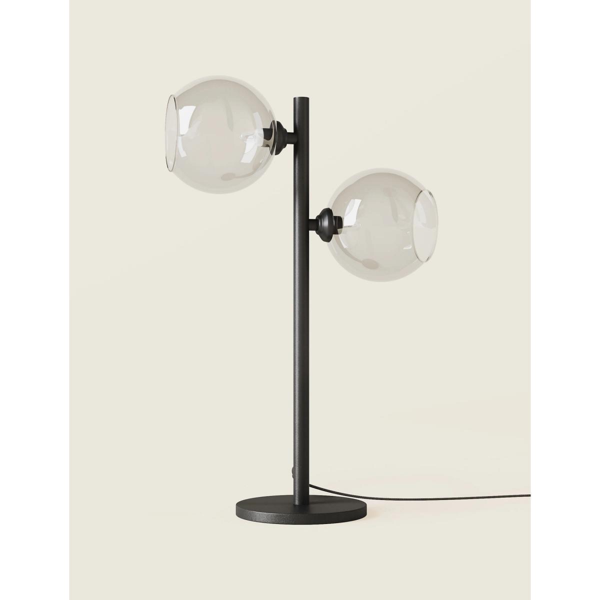 I love this table lamp for its modern, minimalist aesthetic which adds a contemporary edge to any space. The smoked glass globes soften the light, creating a warm, inviting glow - perfect for living rooms or side tables where ambient lighting is key. It works especially well in interiors that feature monochrome colour schemes or sleek, modern furniture, but can also bring a stylish contrast to more eclectic or industrial schemes. For styling tips, consider placing it on a marble or dark wood surface to highlight its matte black finish, and pair it with simple accessories to keep the look clean and sophisticated. Its unique design makes it a versatile piece that can effortlessly elevate both casual and formal interiors.