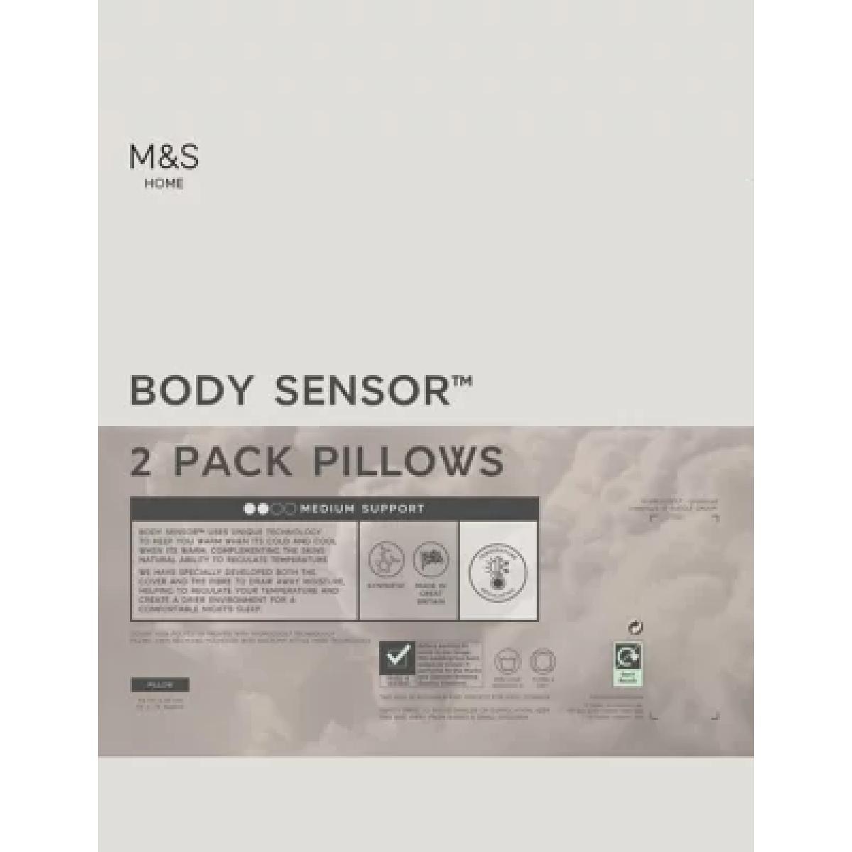 M&S 2 Pack Body Sensor™ Medium Pillows - White, White