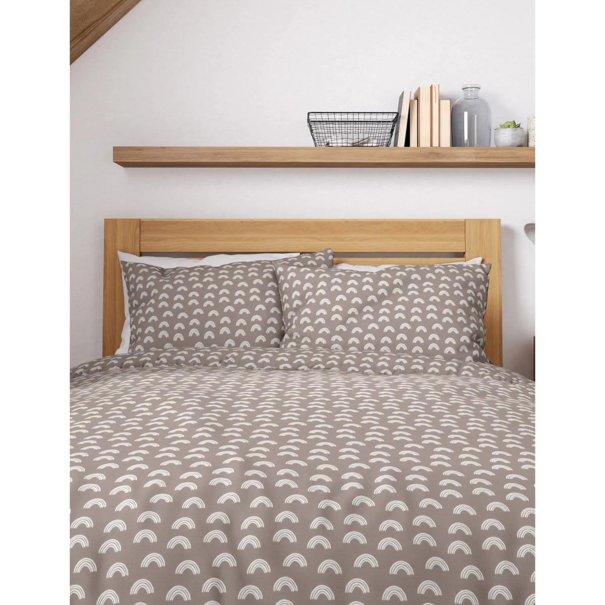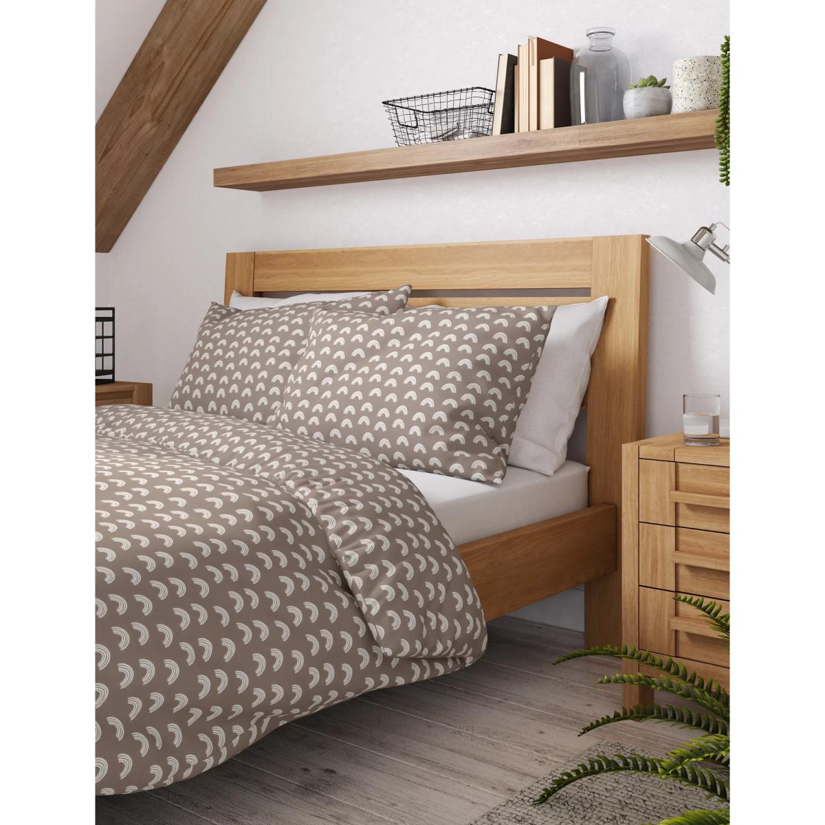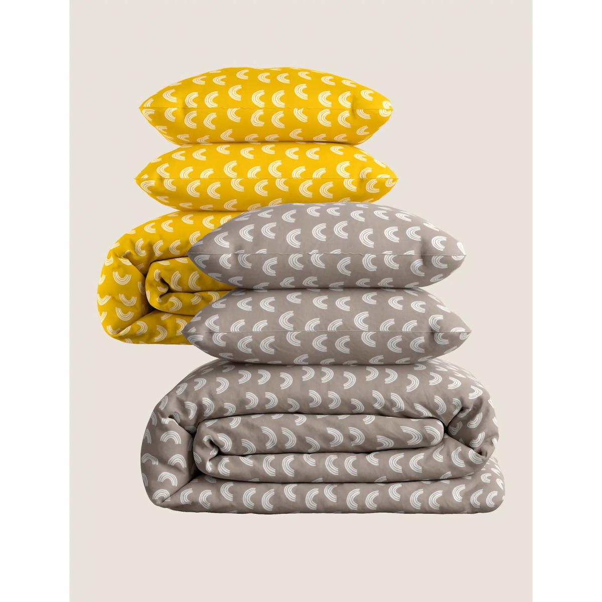 Bring some rainbow cheer to the bedroom with these cotton-blend printed bedding sets. Handy two-pack of two different coloured sets printed with mini rainbows. Made with recycled polyester.