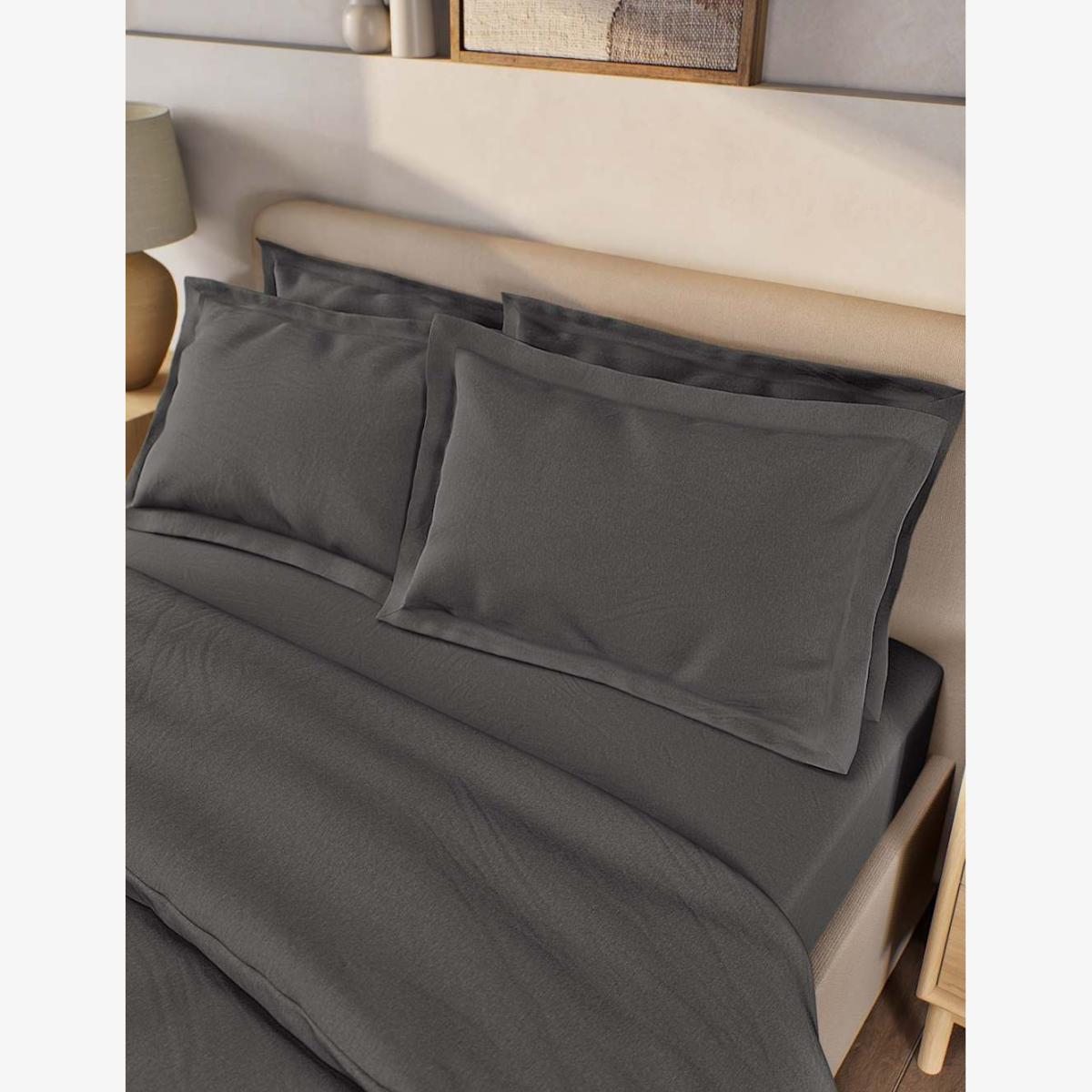 I love this pair of charcoal pillowcases for their clean, versatile look and soft brushed cotton finish, which adds a touch of understated luxury. They work beautifully in modern, minimalist bedrooms but also integrate well into more eclectic or industrial interiors thanks to their neutral tone. Practical styling tips include pairing them with crisp white or lighter linen sheets for contrast, or layering with textured cushions in muted colours for a cosy, refined feel. The brushed cotton adds warmth and comfort, making them perfect for cooler months while their simple elegance keeps the space looking polished and inviting.