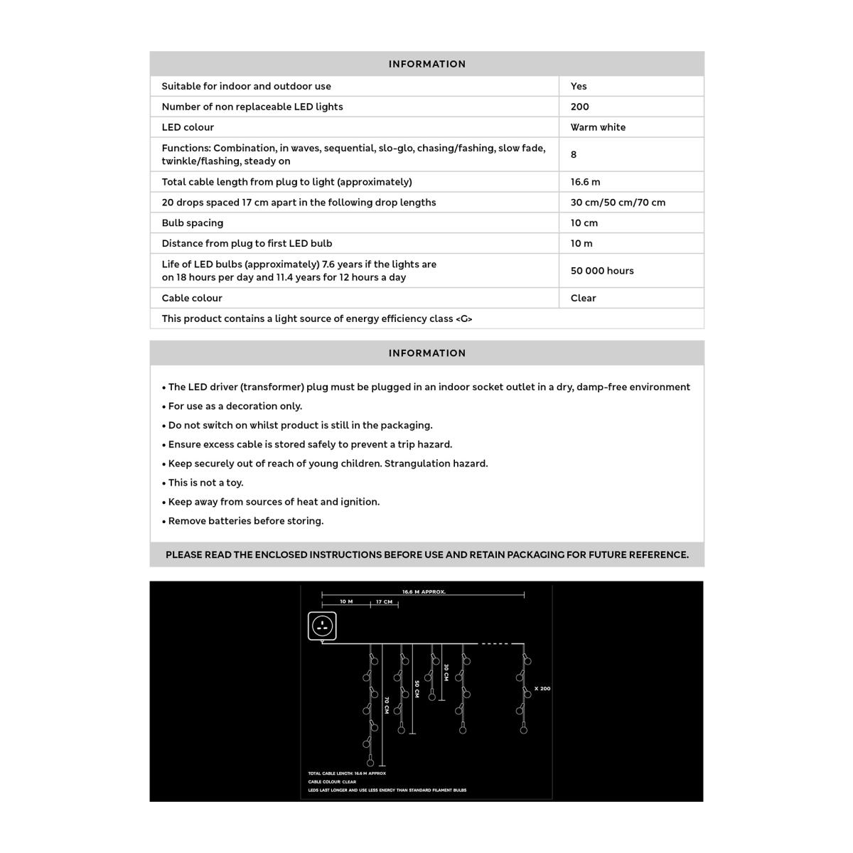 Transform your garden into a winter wonderland with these enchanting outdoor lights. The 200 LEDs emit a soothing warm white glow, arranged in a graceful trailing cascade of varying lengths for an extra festive feel.