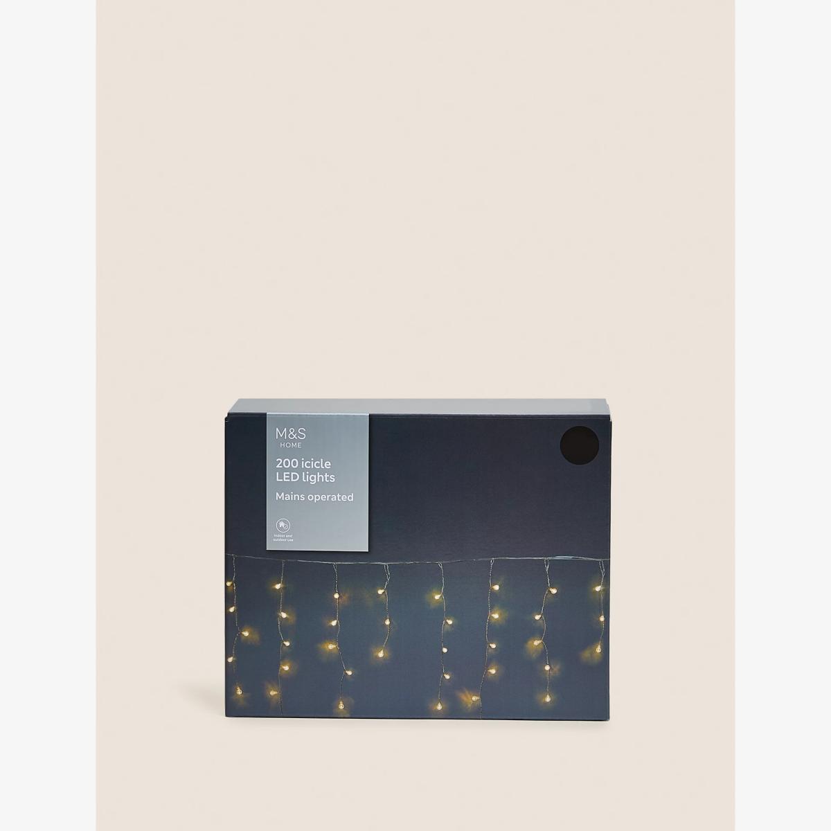 M&S 200 Warm White LED Icicle Outdoor Lights - Silver, Silver