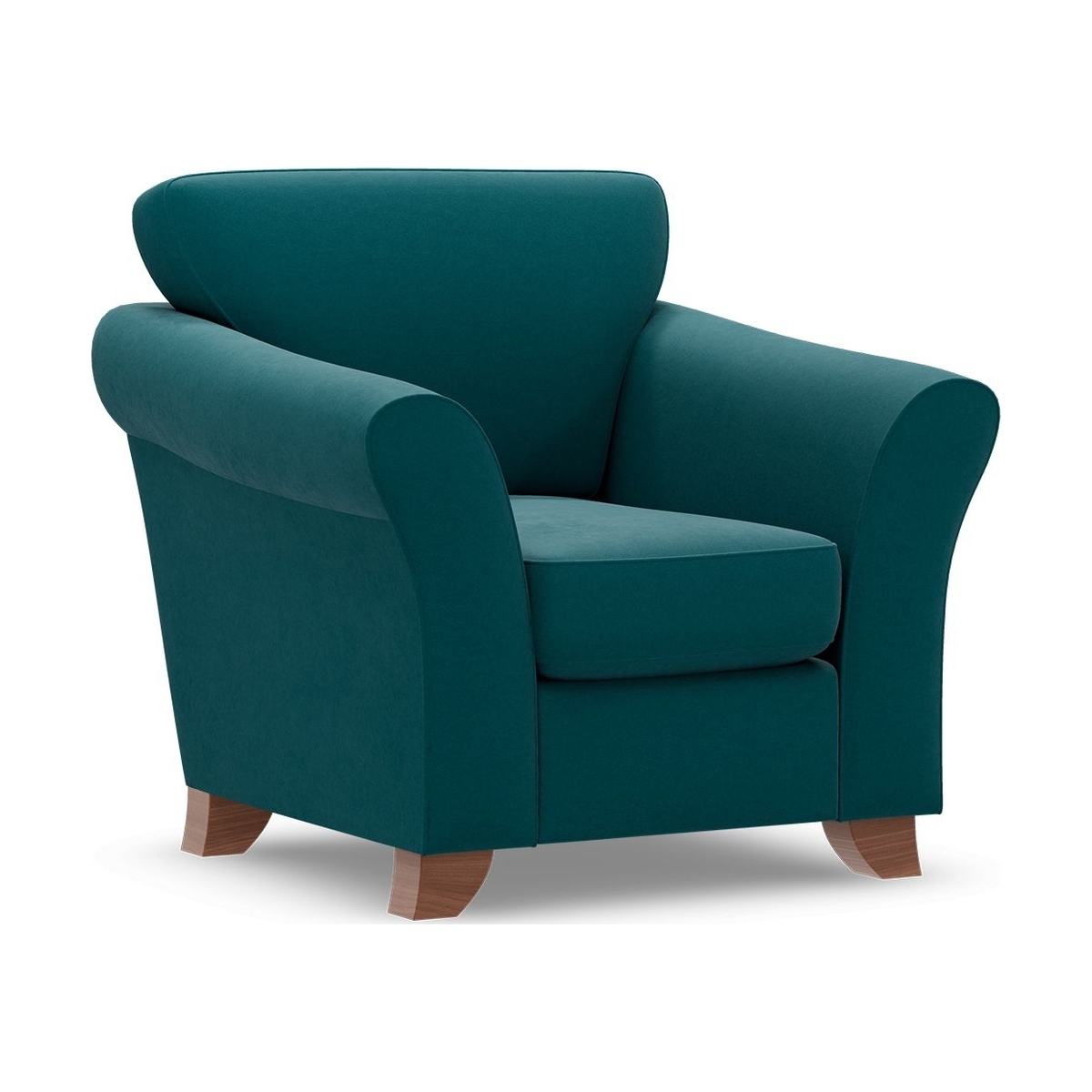 I love this armchair for its classic yet contemporary silhouette, making it versatile for various interiors. It works particularly well in cozy living rooms, reading nooks, or even a home office where comfort is key. The rich teal shade adds a pop of colour without overpowering a space, and it pairs well with both neutral and patterned fabrics. Practical styling tips include layering with textured cushions for added comfort and visual interest, or placing a soft throw over the back for a lived-in look. Its timeless shape and manageable size make it a great choice for both modern and traditional interiors.