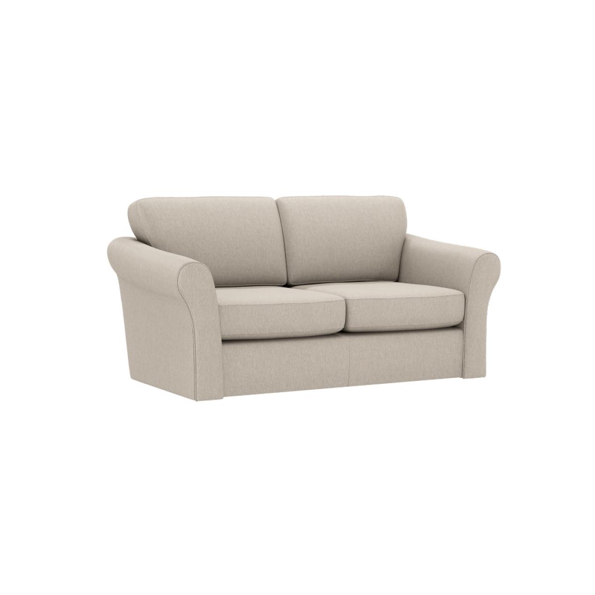 I love this sofa for its classic and versatile design, making it a great addition to both traditional and contemporary interiors. Its neutral fabric colour allows it to blend seamlessly with a variety of colour schemes and accessories, while the sturdy frame and comfortable cushions make it practical for everyday use. Style it with cosy throws and an assortment of patterned cushions for a relaxed, inviting look, or pair with sleek, modern furniture for a more minimalist vibe. It works particularly well in small to medium living spaces due to its size, and layering with textured rugs or wall art can help personalise the space and add visual interest.