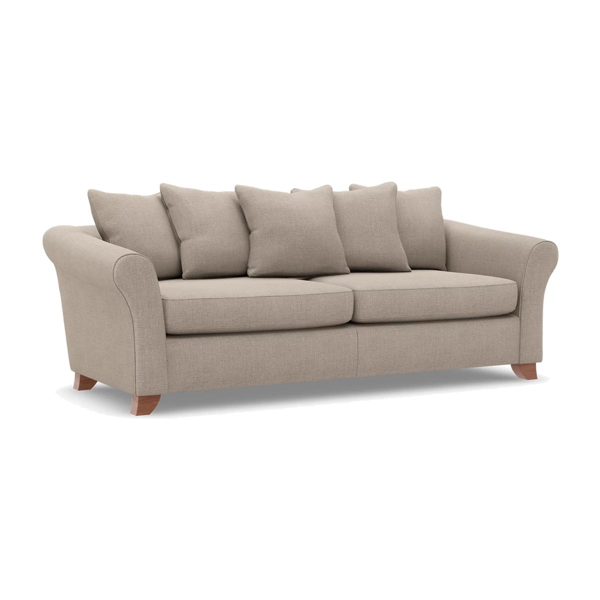 Set the scene for relaxing days and nights with our Abbey sofa. This large four-seater style was made for busy homes and has a comfortable shape complete with feather-filled scatterback cushions. The soft scroll arms provide extra support, while the clever stain defence technology of our made to order fabrics will help keep your sofa looking good as new for longer. Modern, relaxed shape Spacious design Set on raised wooden feet