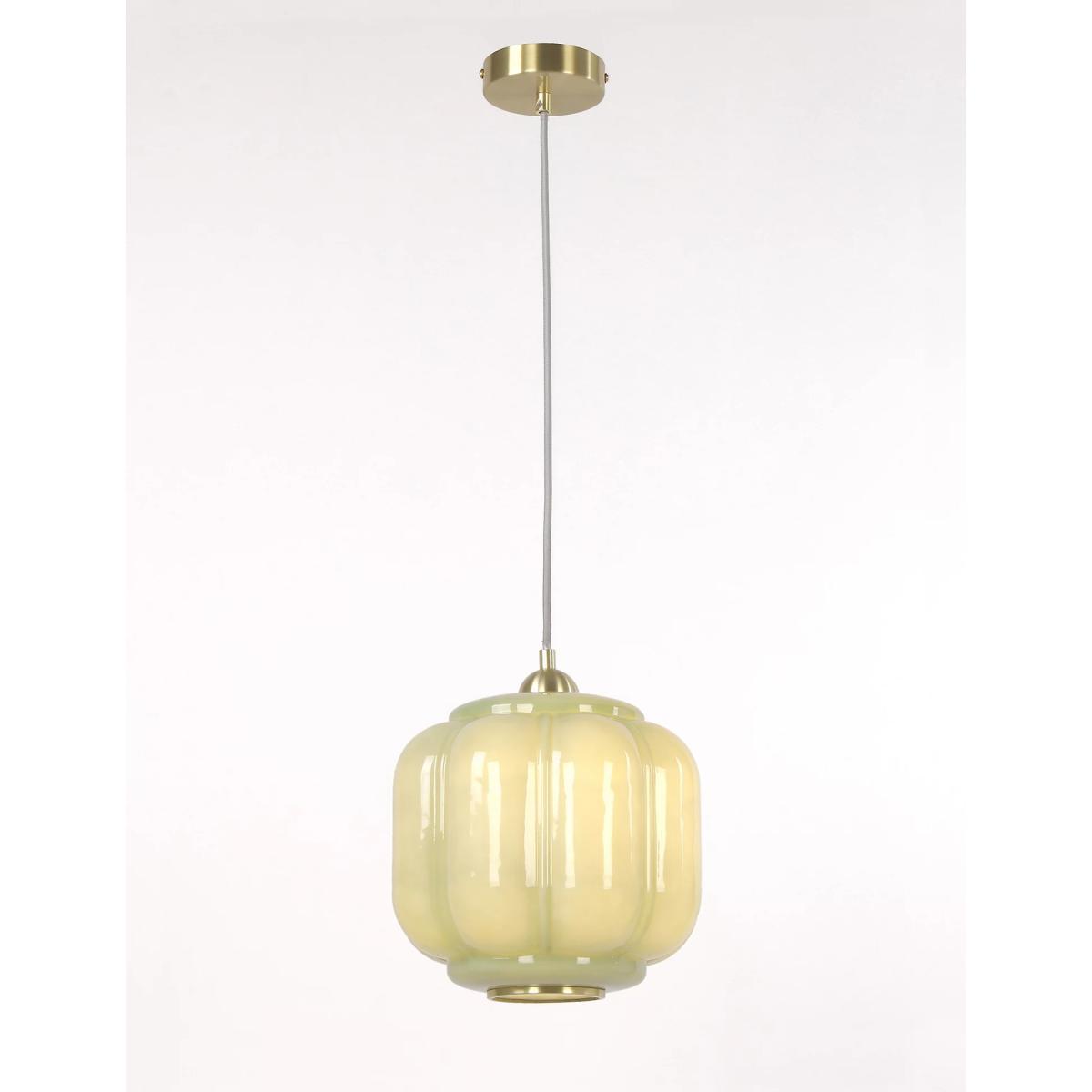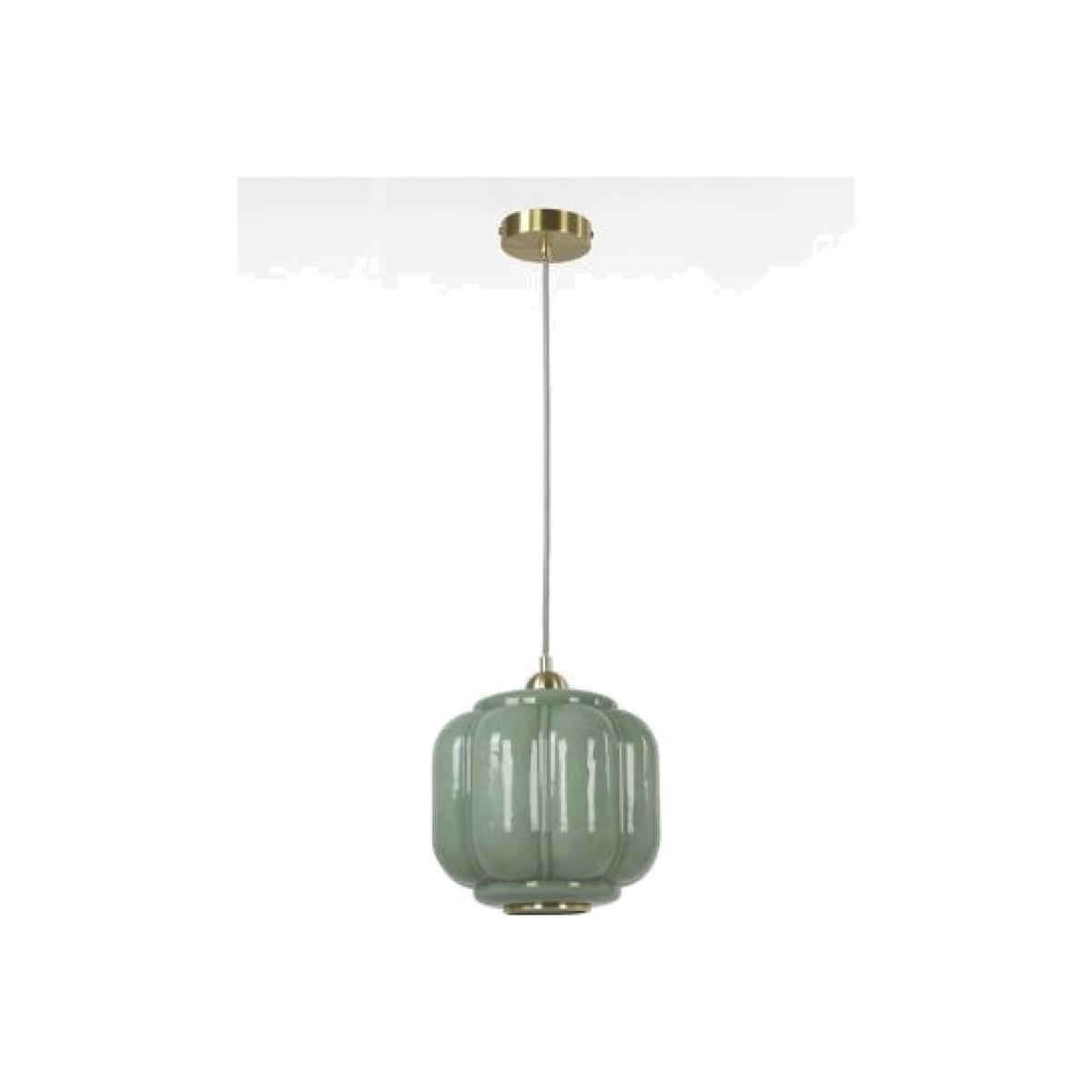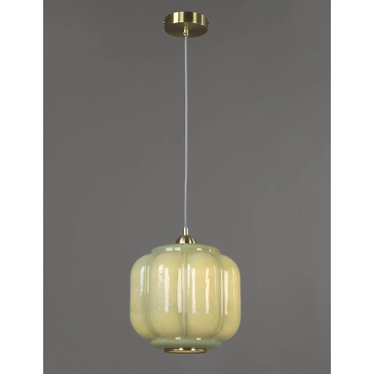 Hang this vintage inspired pendant light from your ceiling to illuminate your home in style. Featuring a green glass shade this light is complimented with satin brass metalwork and a fabric cable for an understated finish.