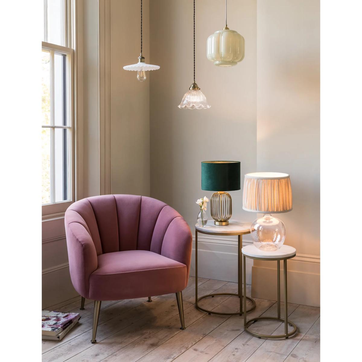 I love this pendant in green for its contemporary yet versatile appeal. Its muted hue works beautifully in both modern and eclectic interiors, adding a pop of colour without overwhelming the space. Perfect for kitchens, dining areas, or cosy corners, it pairs well with natural textures and minimalist palettes. When styling, consider hanging it at varying heights in a cluster for an eye-catching centrepiece, or keep it solitary above a dining table for a subtle statement. Its shape and colour make it a flexible choice that can soften sleek, modern rooms or complement more textured, layered spaces.