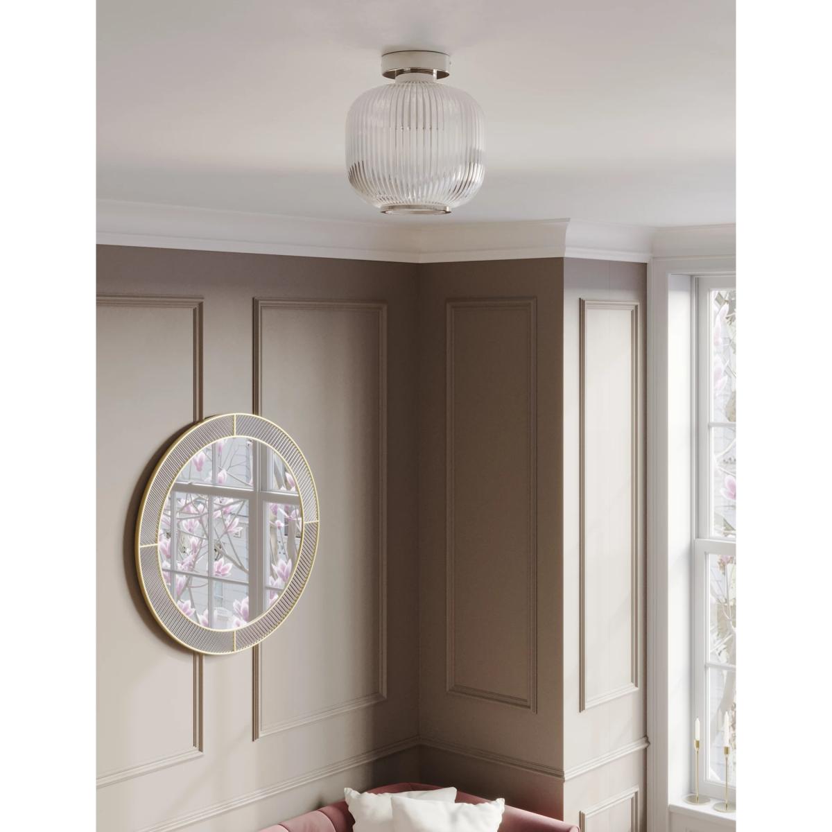 Add art deco-inspired style to your home with our Amelia ceiling light. It features a curved glass shade with an attractive ribbed texture and is finished with gleaming metalwork. Choose between our colourways to illuminate your space with a soft glow.