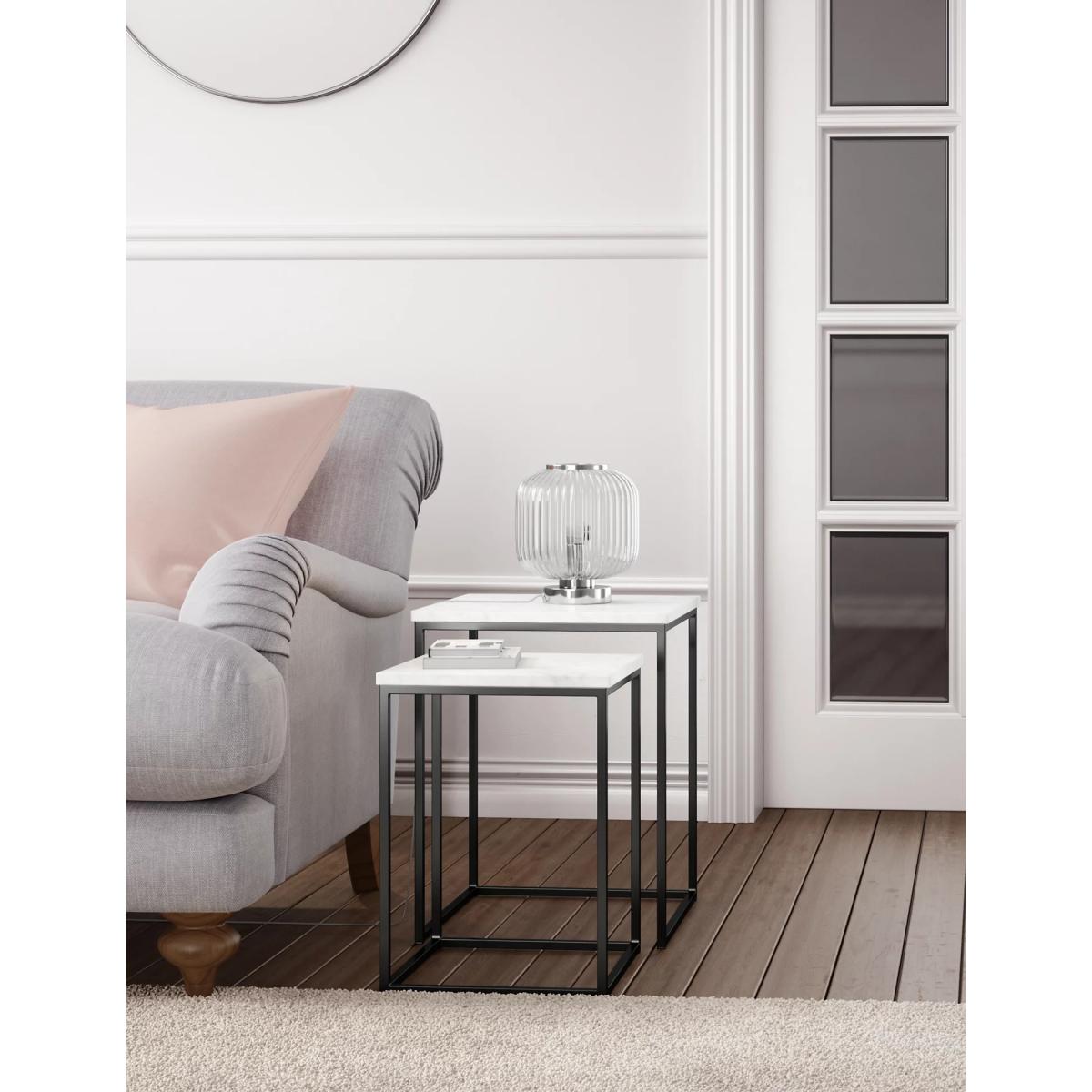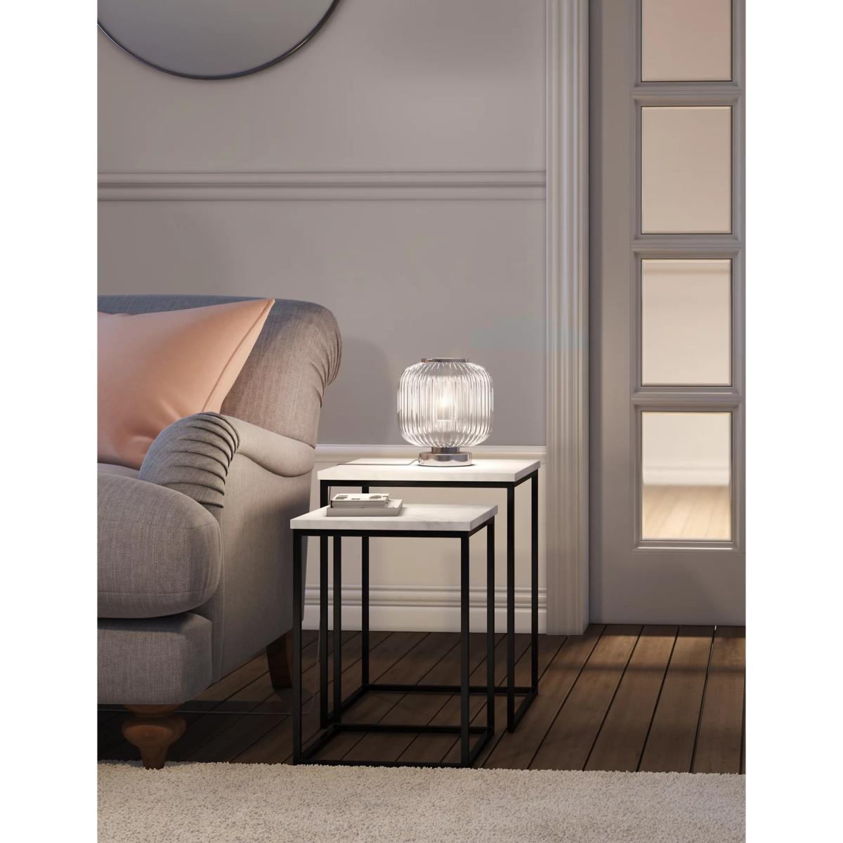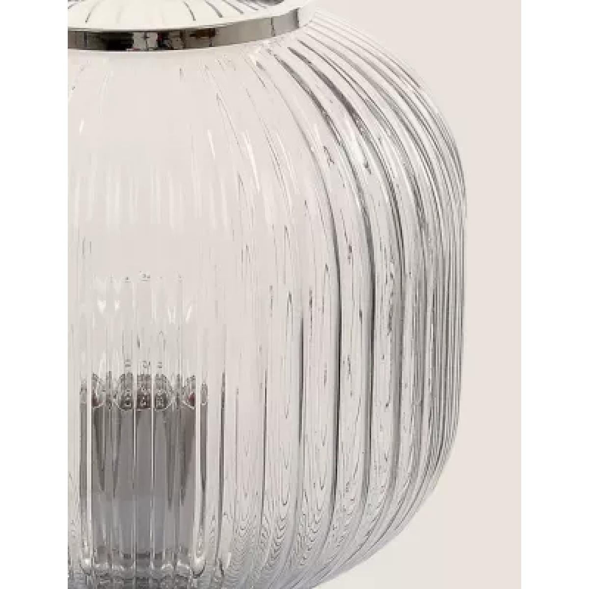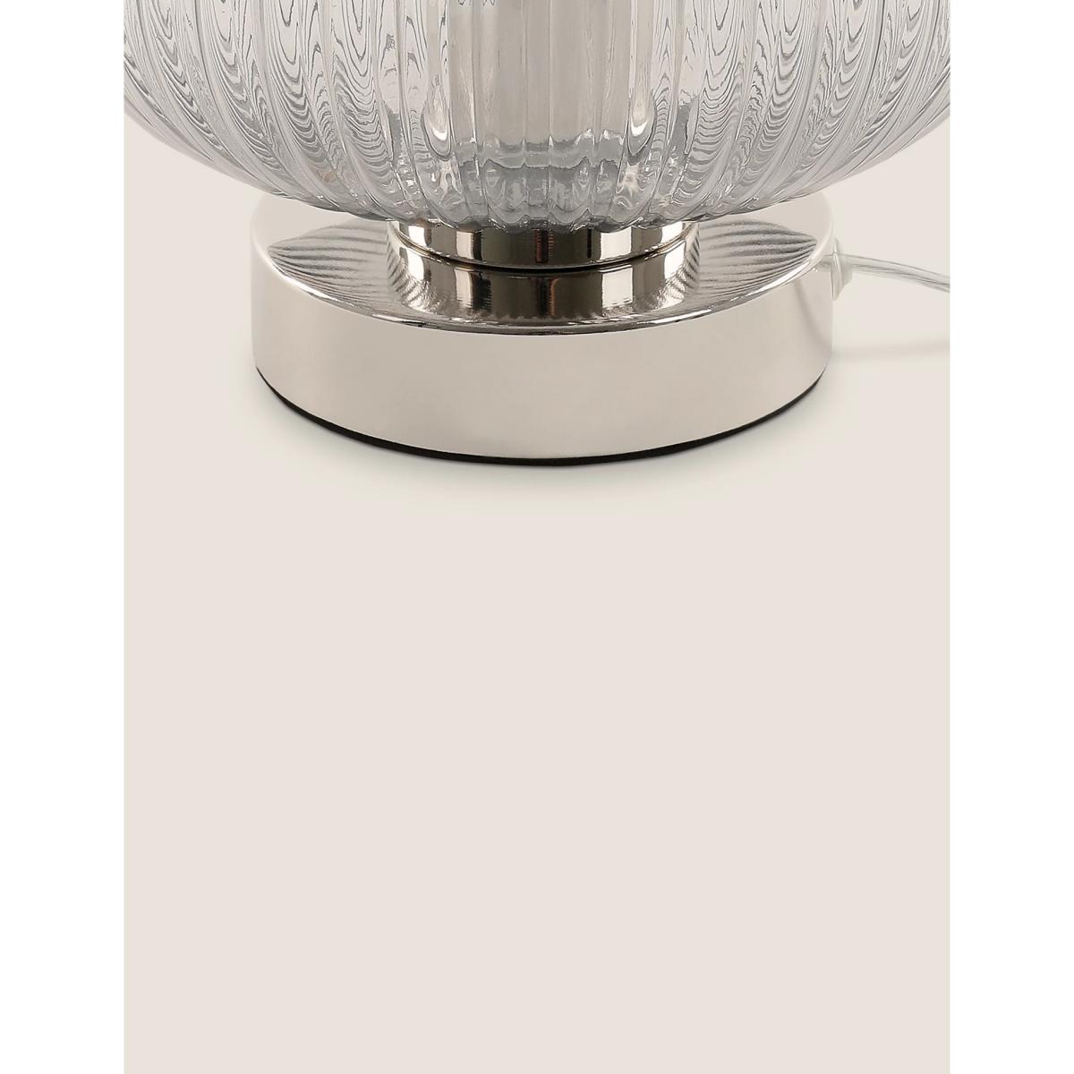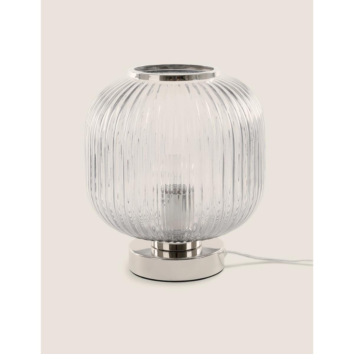 Our Amelia lamp is a beautiful way to light your space. This curved table lamp is crafted from ribbed glass and set on a polished metal base. Choose from chrome or brass for the perfect addition to your home.