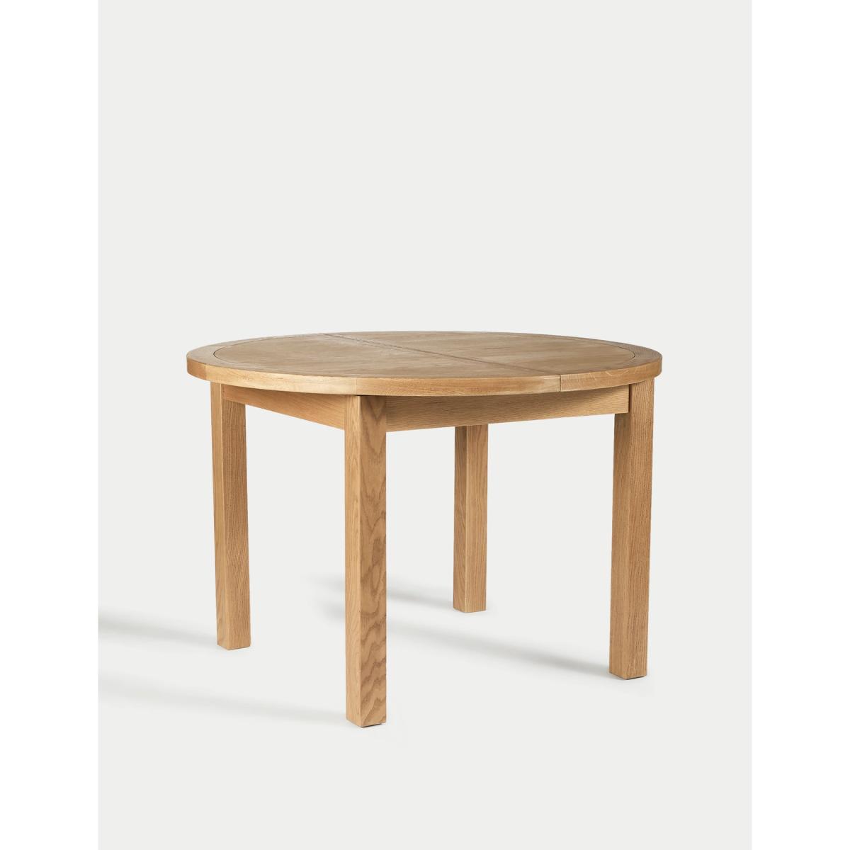 Host friends and family in style with the this extending Amersham 4-6 seater dining table. This round design features a oak veneer top and is is supported by four oak veneer legs. Ideal for smaller spaces, this compact design has an extendable flip top design to seat up to six people and is easily made smaller again when not in use. Find matching pieces in the rest of the Amersham range. We’re so confident our furniture is built to last, our industry-leading guarantee covers any manufacturing failure on all furniture. That’s our promise, and why our furniture comes with a 10-year guarantee that you can trust. Excludes: outdoor furniture and any issues that are a result of normal wear and tear, improper care or accidental damage.