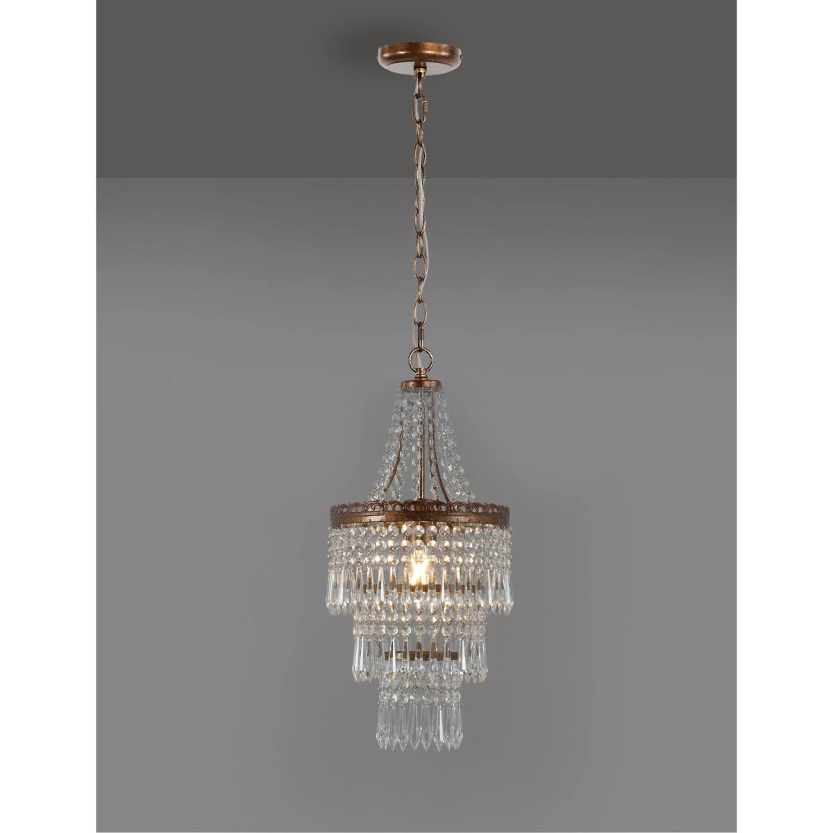 Add a dose of glamour to your interior with the stunning Anabelle chandelier. Inspired by vintage design, this statement piece features antique copper metalwork and clear-cut glass beads that bring a glistening finish to your room. Match it with other items in the Anabelle range for a coordinated look.