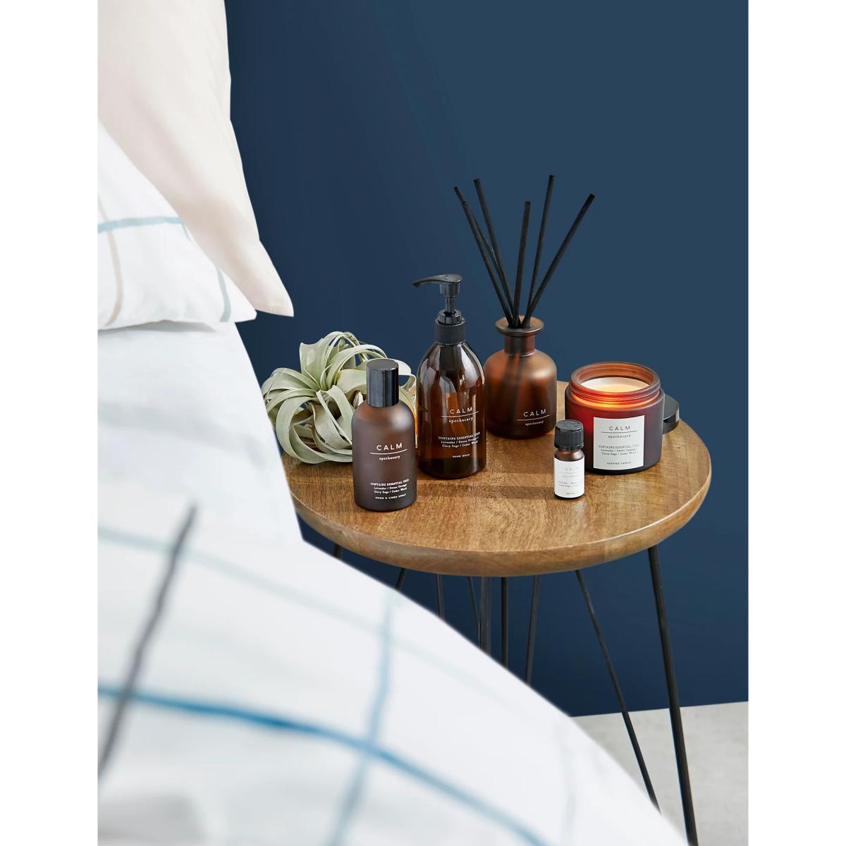 Create a luxurious spa experience at home with the soothing aroma of this richly scented candle. Our Calm candle is crafted with sweet orange and lavender essential oils, given a note of warmth with cedar wood and a dash of tranquillity from clary sage. Our single candle offers a simple way to transform any space through the power of fragrance. Packaged in an elegant apothecary style glass container, it also makes a thoughtful gift for the holidays.