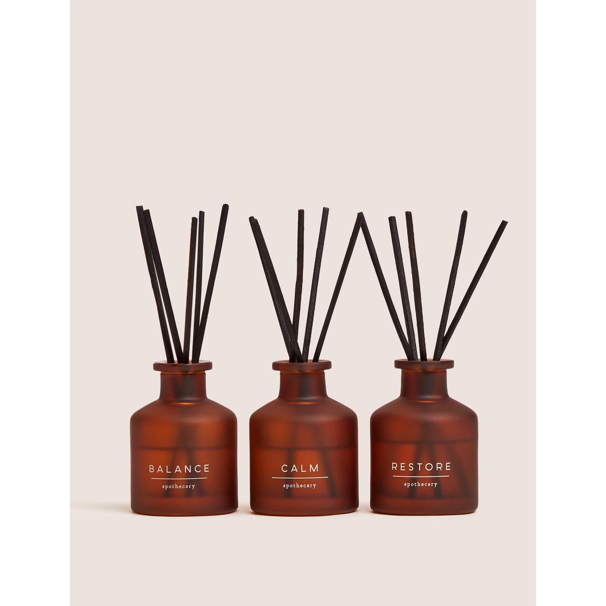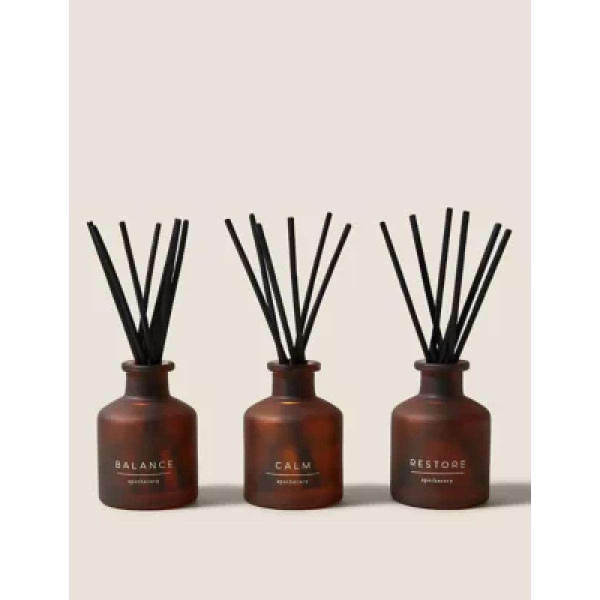 From our Apothecary range, this gift set features three miniature diffusers in stylish glass bottles. The set features our Calm, Restore, and Balance scents.