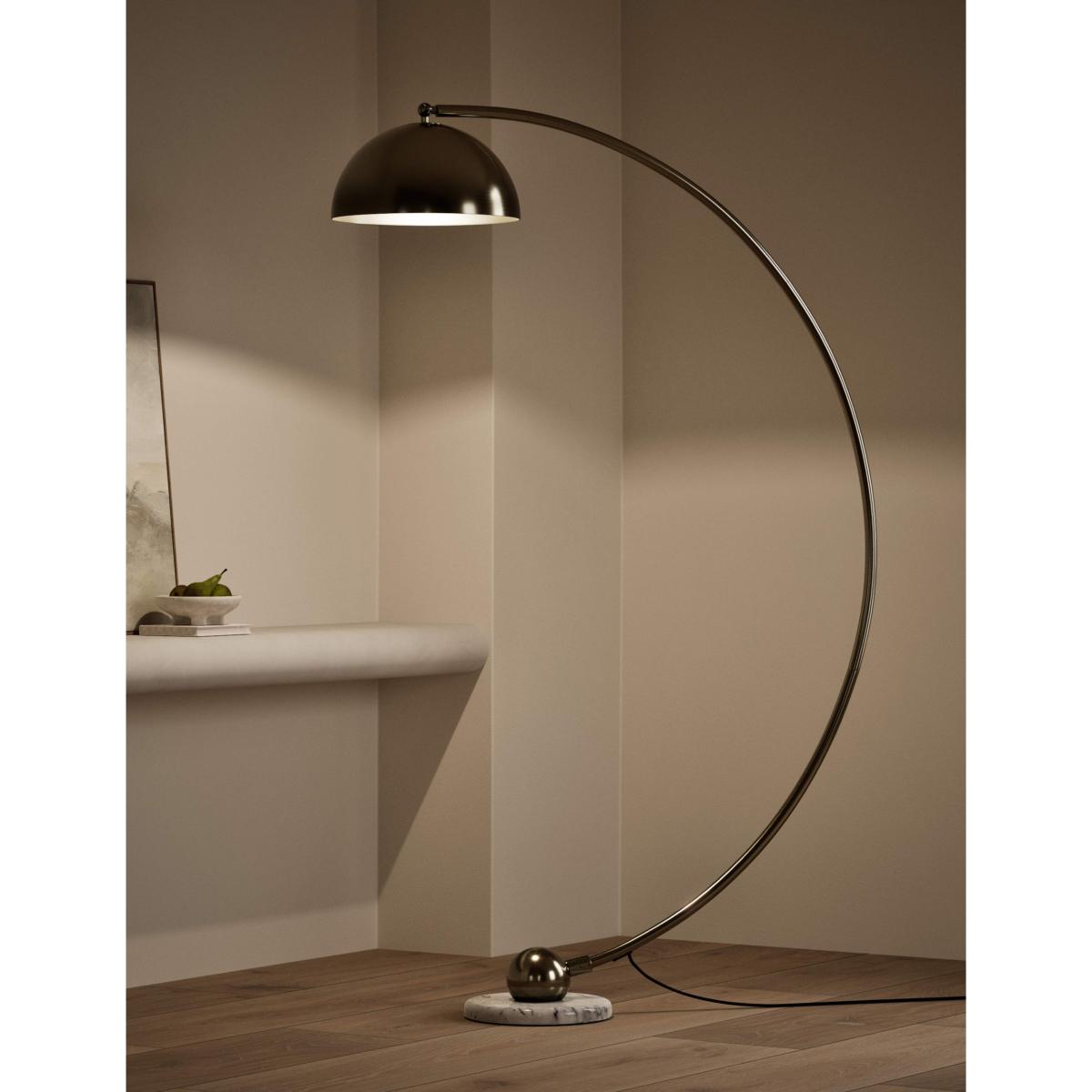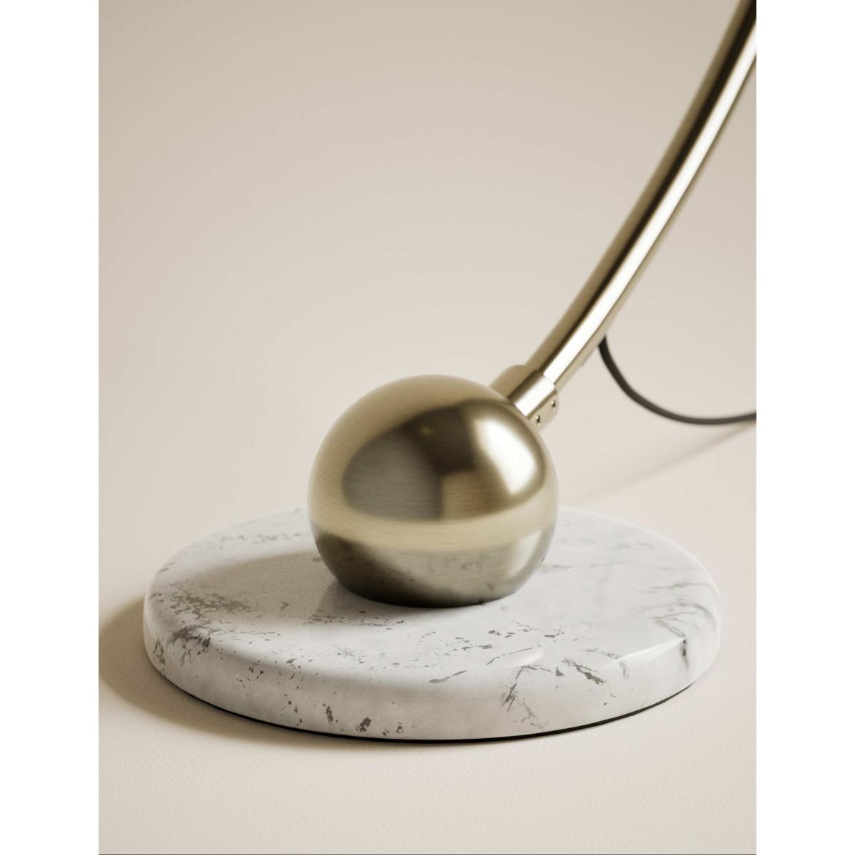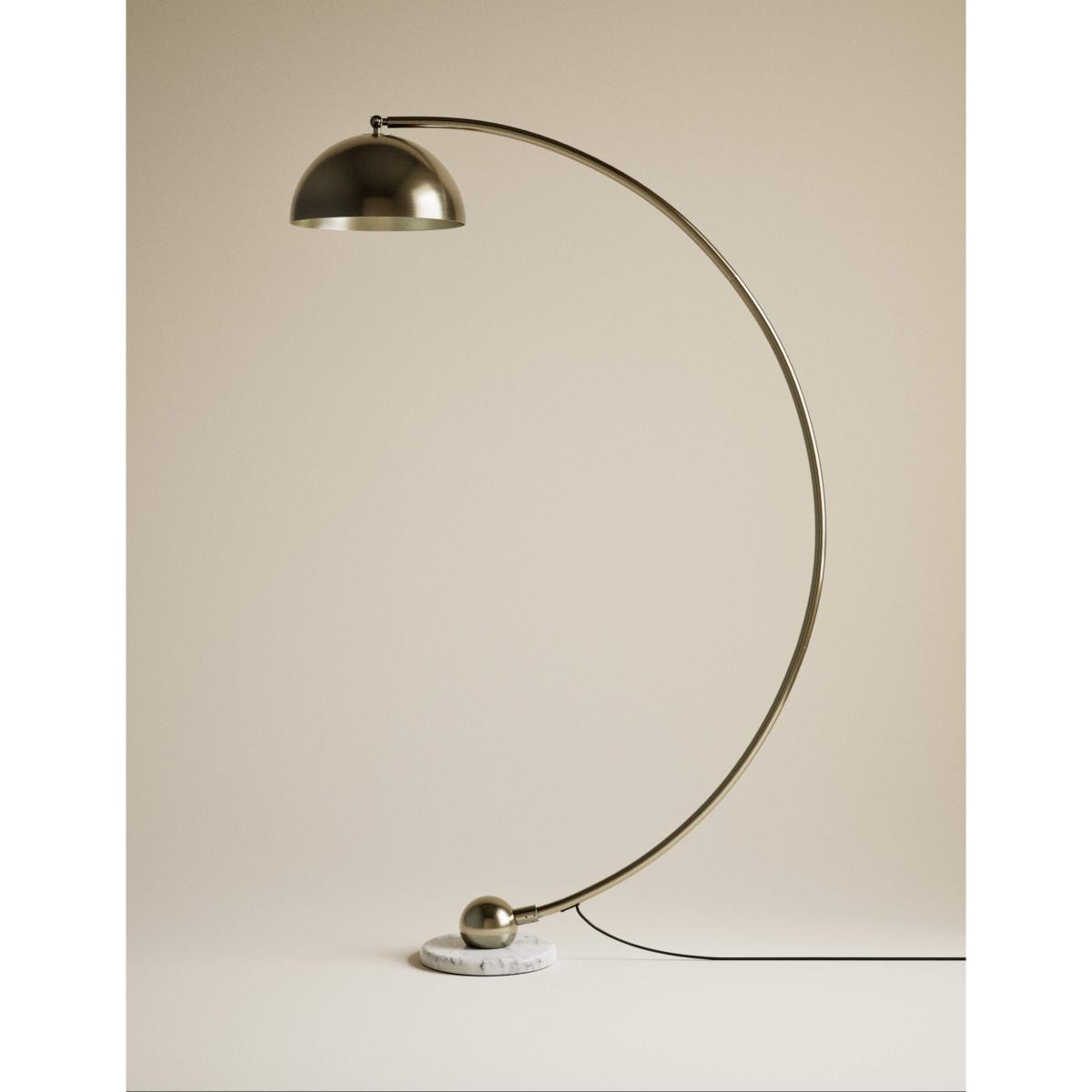 With its clean lines and striking form, this floor lamp is an eye-catching addition to your room. It's crafted from brass for a premium look, with a statement metal globe shade. A marble-effect base adds refined detail.