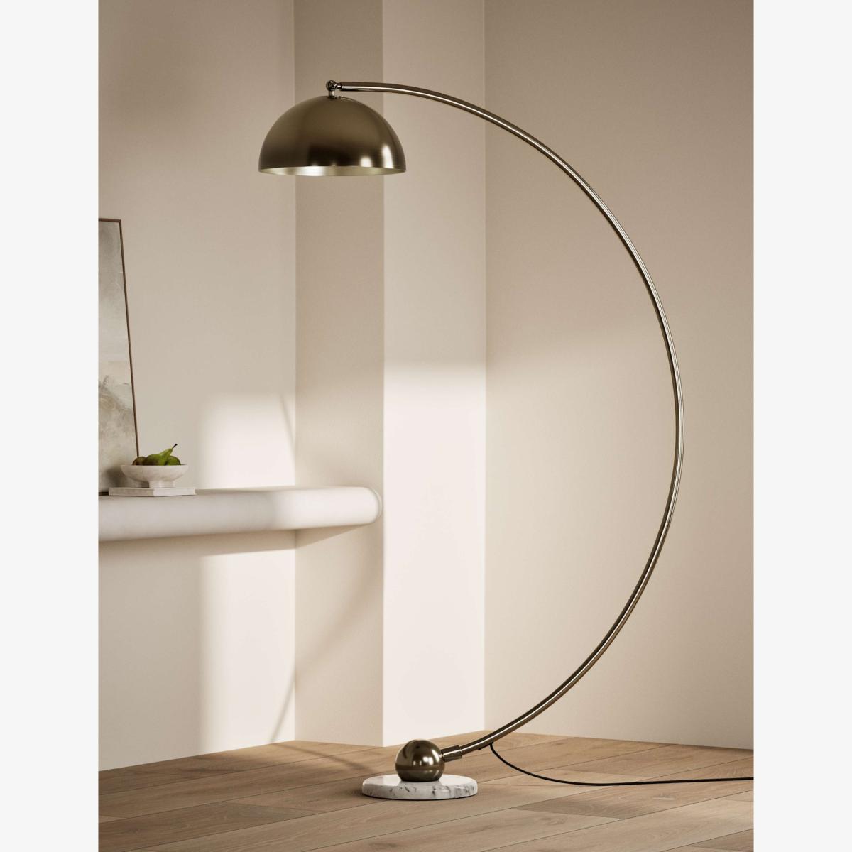 I love this arc floor lamp for its sleek, timeless design and versatile finish. The antique brass adds warmth and sophistication, making it a great statement piece for both modern and more traditional interiors. It works particularly well in living rooms or reading nooks where you need functional lighting with style. For styling tips, consider placing it next to a cosy armchair or sofa to create a welcoming corner, and pair it with neutral or earthy tones to highlight its warm brass tone. Keep the surrounding decor minimal to really let the lamp stand out, or team it with other mid-century inspired pieces for a cohesive look.