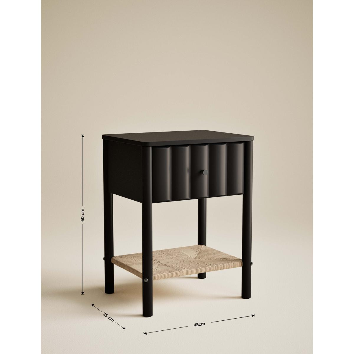 The Ariana Bedside Table is a bold blend of texture and contrast. Finished in black, it features a fluted front drawer with a sleek solid wood handle. Below, an intricately handwoven natural-colour shelf offers warmth and artisanal charm. A single drawer offers handy storage for any nighttime essentials. Other items in the Ariana range are also available. We’re so confident our furniture is built to last, our industry-leading guarantee covers any manufacturing failure on all furniture. That’s our promise, and why our furniture comes with a 10-year guarantee that you can trust. Excludes: outdoor furniture and any issues that are a result of normal wear and tear, improper care or accidental damage.
